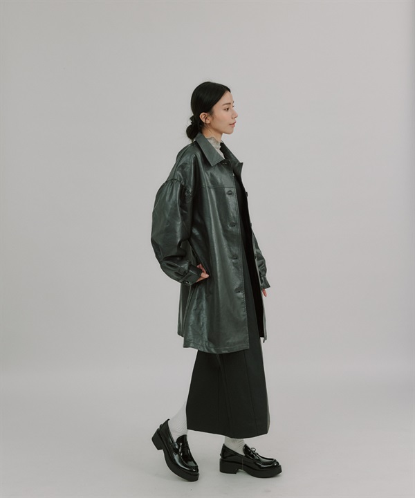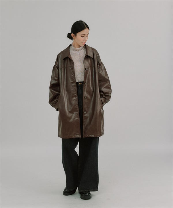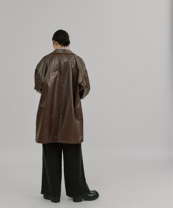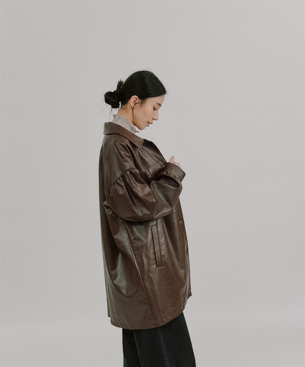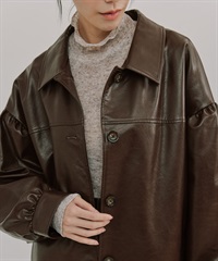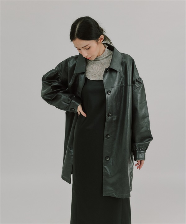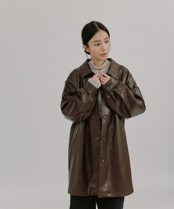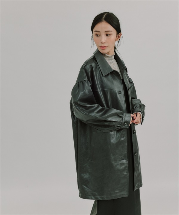 【張甯兒聯名企劃】仿皮革蓬袖寬版大衣