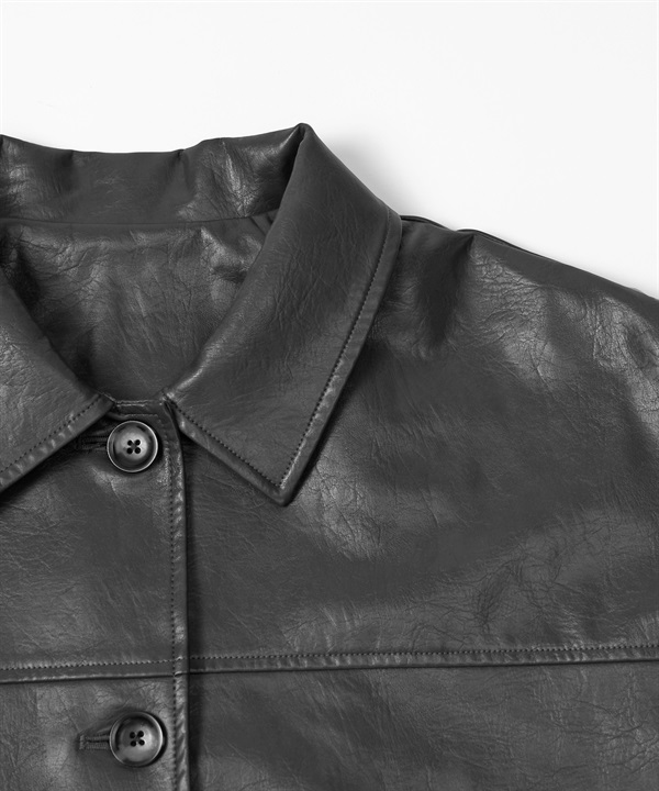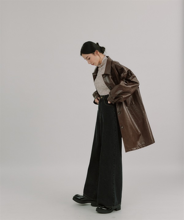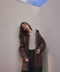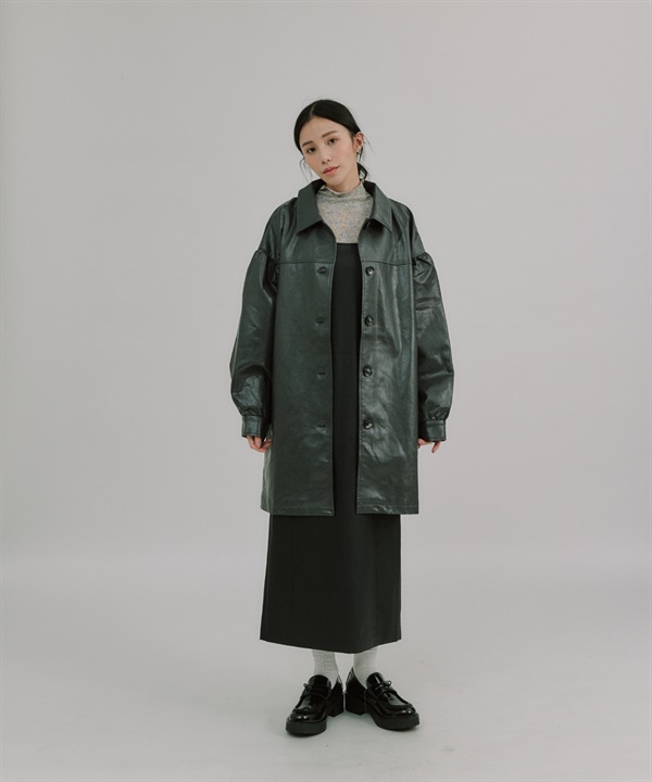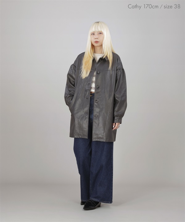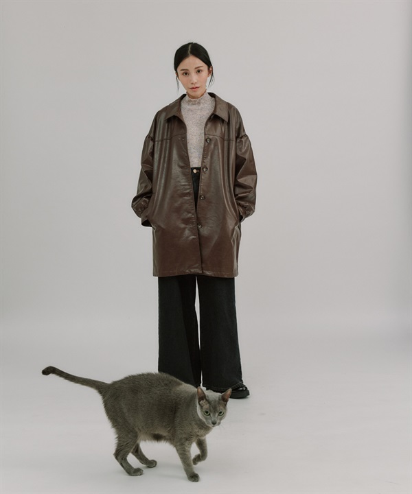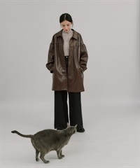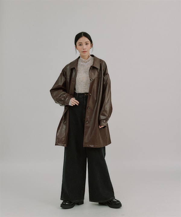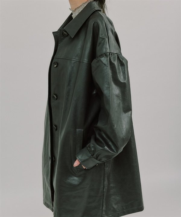 【張甯兒聯名企劃】仿皮革蓬袖寬版大衣