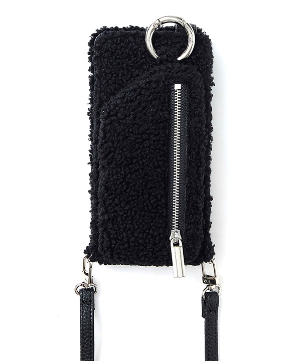 • ajew / 絨毛掀蓋手機殼(黑色-M-BLACK)