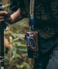 口袋由透明 PVC 材料製成,也可以利用「可見式收納」做出自己最獨特的口袋風景。 肩背帶為彈性繩,可透過拉繩輕鬆調整長度掛在胸前或肩背,或與其他背繩替換搭配使用。