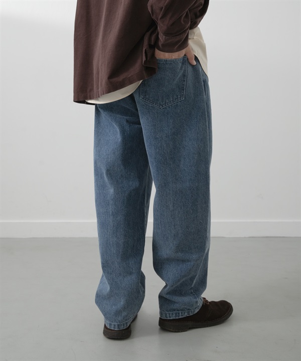 • 灰調寬版錐形牛仔褲(海洋色-M-其他藍色)
