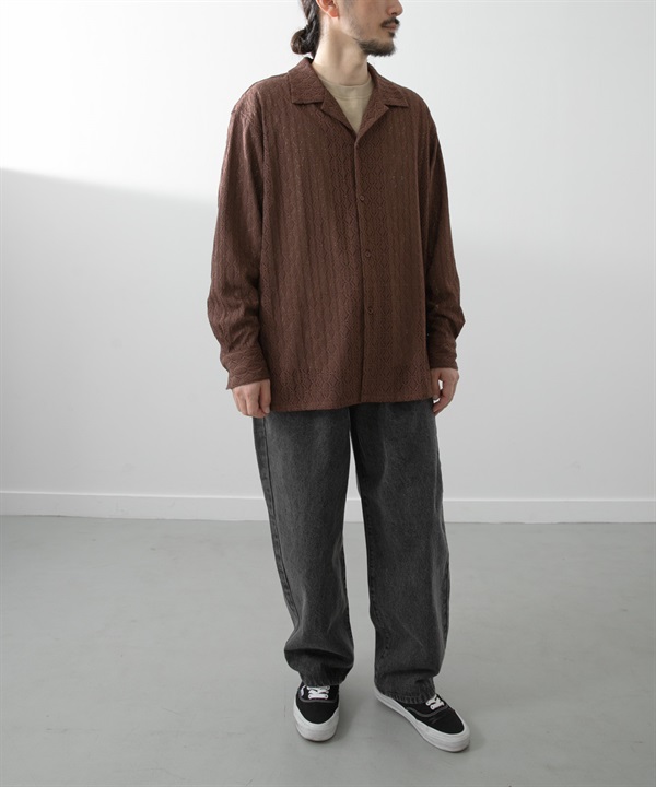 • 灰調寬版錐形牛仔褲(沙色-M-其他膚色)