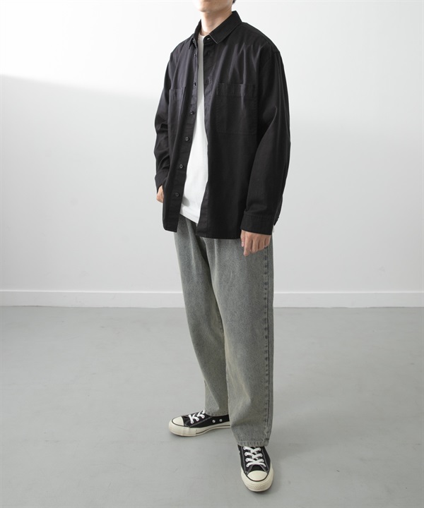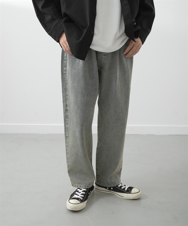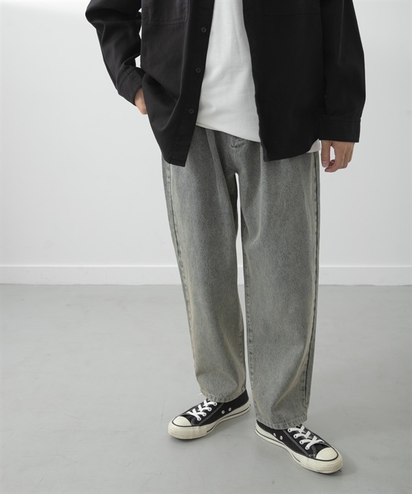 灰調寬版錐形牛仔褲