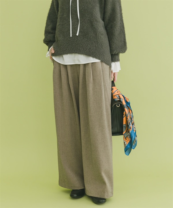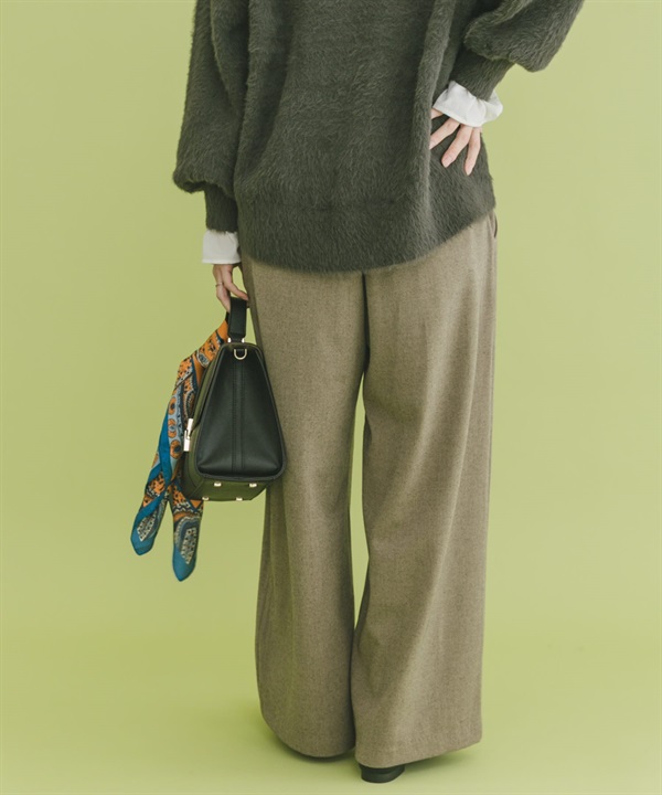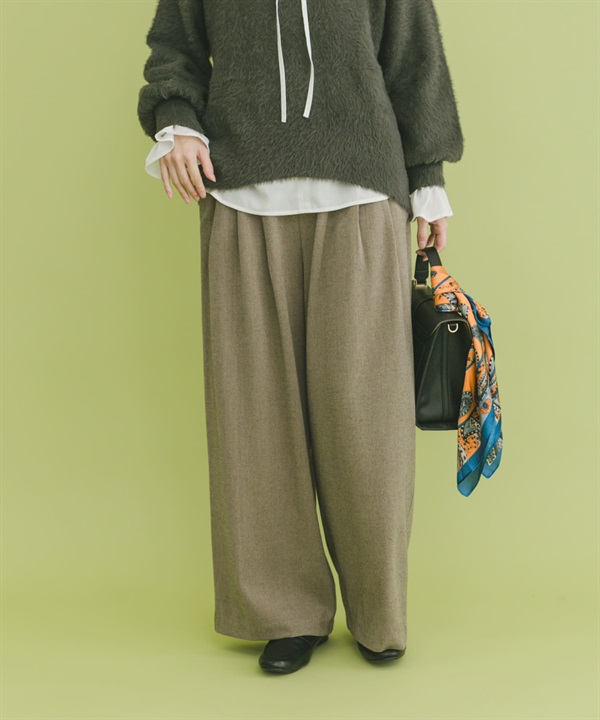 【Ivy推薦】混毛料打褶碎褶直筒褲