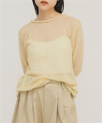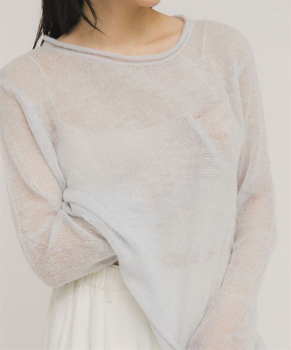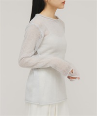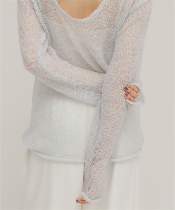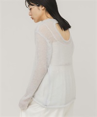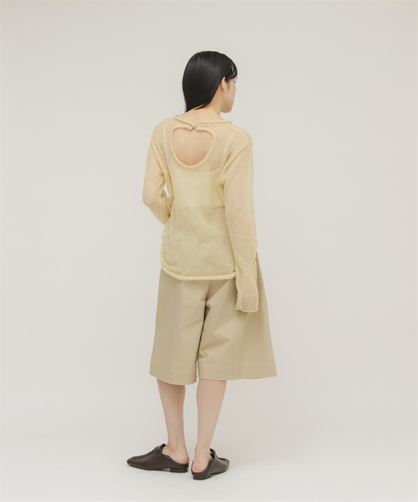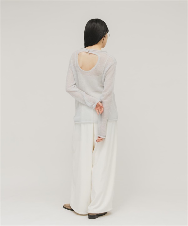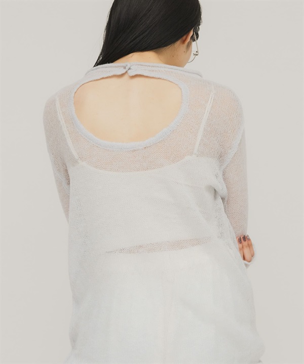 背後開衩透膚針織上衣