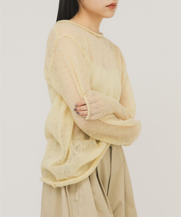 「背後開衩透膚針織上衣」已售完。