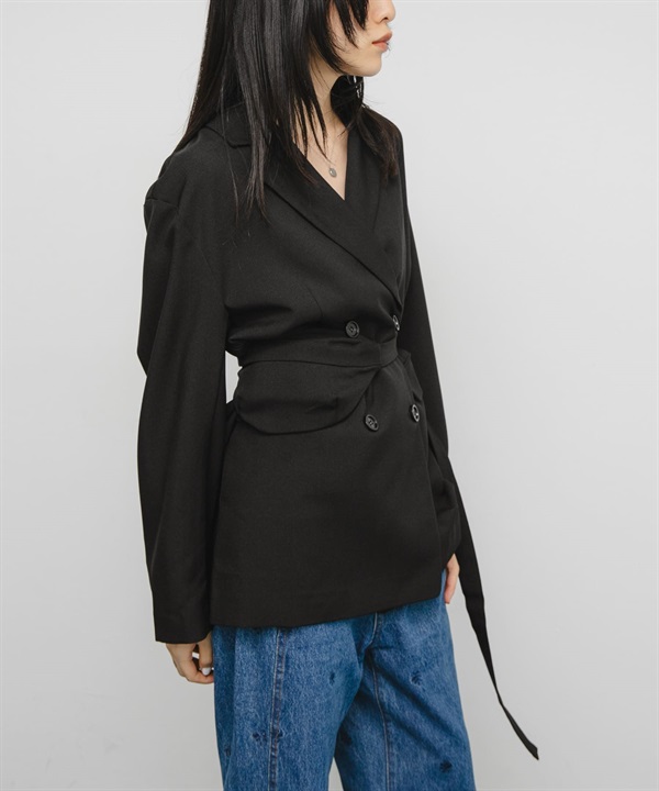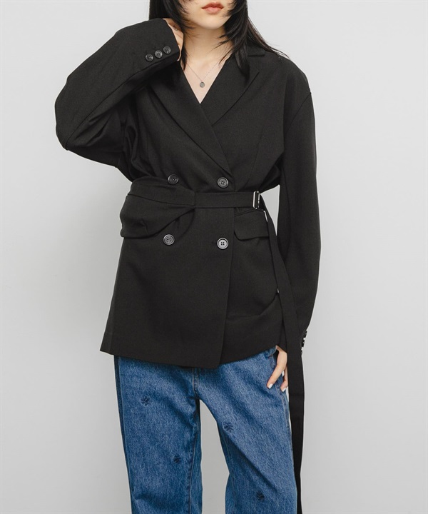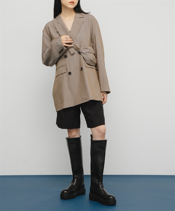 • 【成套組合】雙排扣西裝外套 × 腰包