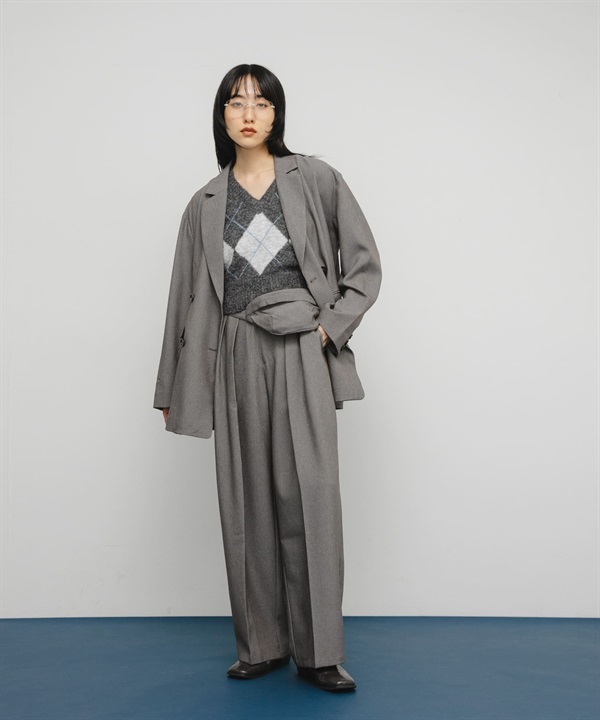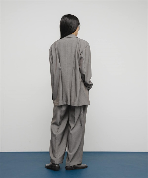 雙排扣設計西裝外套搭配腰包的超值組合。略寬鬆感剪裁,背面打褶設計是低調亮點。附腰包設計,可斜背或掛在西裝外,輕鬆變換多種造型。下身推薦搭配同材質的雙褶長褲(KBA6-24J080),再內搭緹花背心營造英倫風。推出灰色、棕色細格紋款,以及百搭的黑色。
