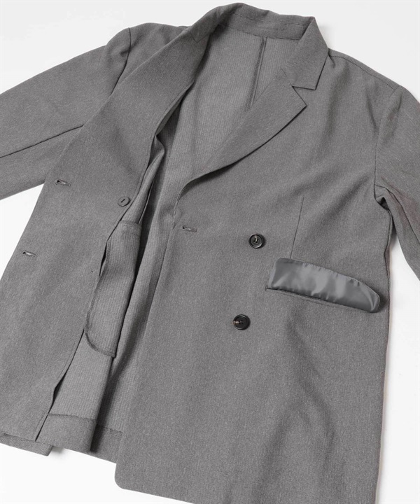 • 【成套組合】雙排扣西裝外套 × 腰包(灰色-one-其他灰色)