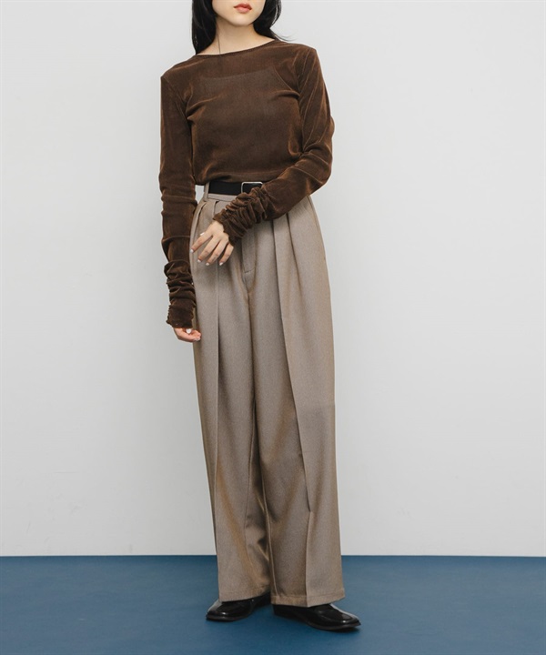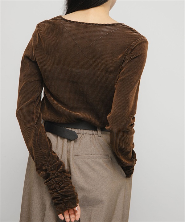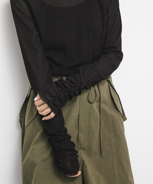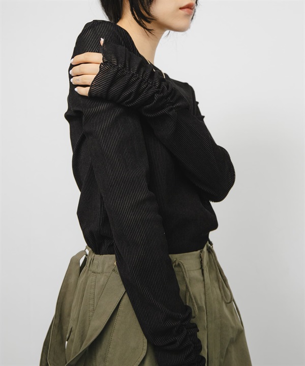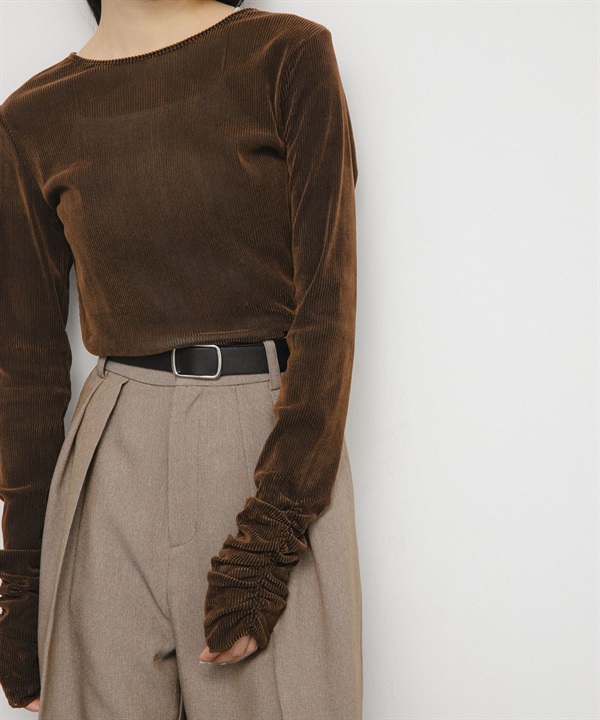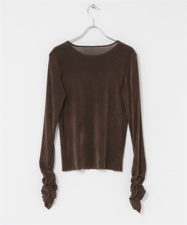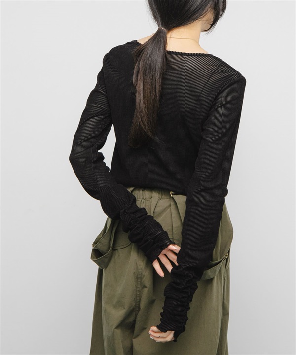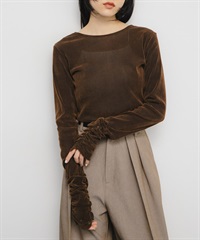 透膚絲絨碎褶袖上衣