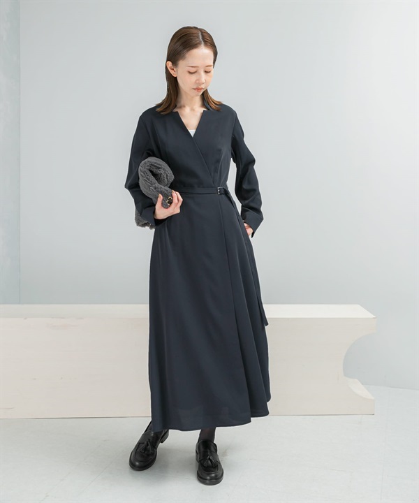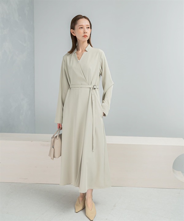 腰帶設計圍裹式洋裝