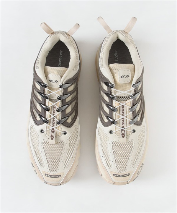 SALOMON 全新 ACS PRO DESERT 系列承襲經典的技術輪廓,並注入未來主義的礦物美感,從夏季風景不斷變化的沙漠面貌中汲取設計靈感,透過鞋身的配色、印花及材質構想日益貧瘠的景觀,嘗試引起了人們對地球塵土飛揚和乾燥狀況的關注。