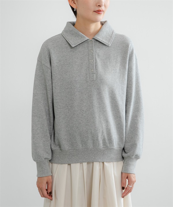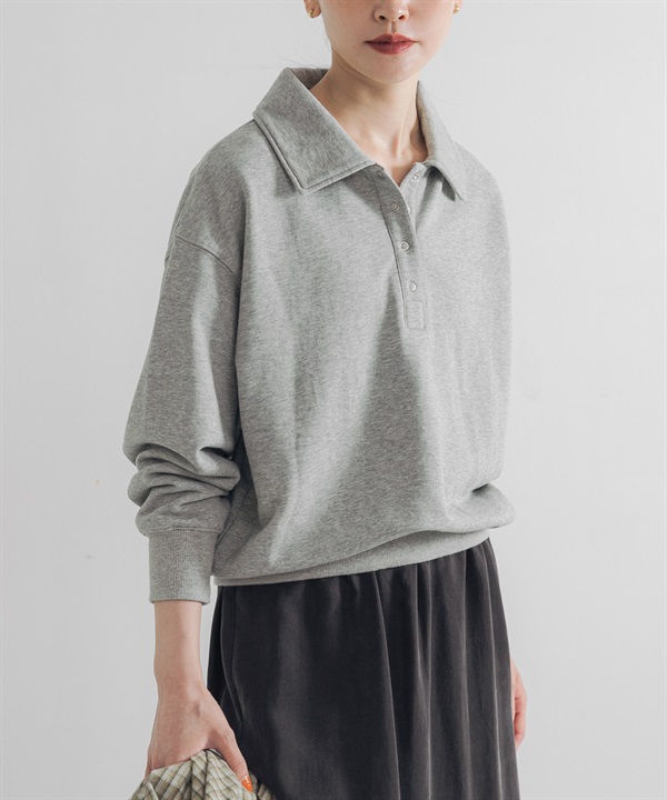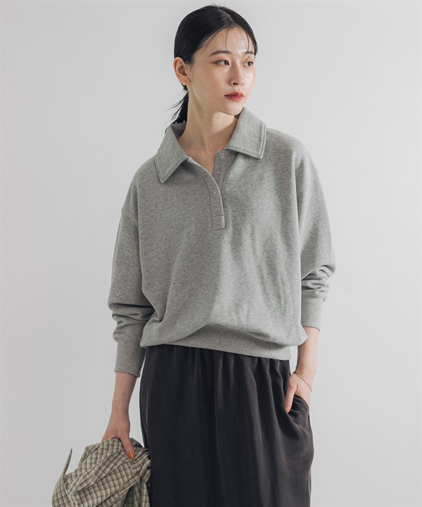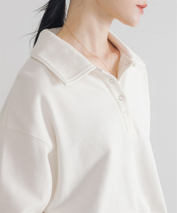 襯衫領棉質毛圈上衣