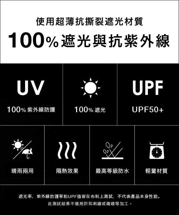採用超薄抗撕裂遮光布,實現100%遮光、防曬與高效紫外線防護。