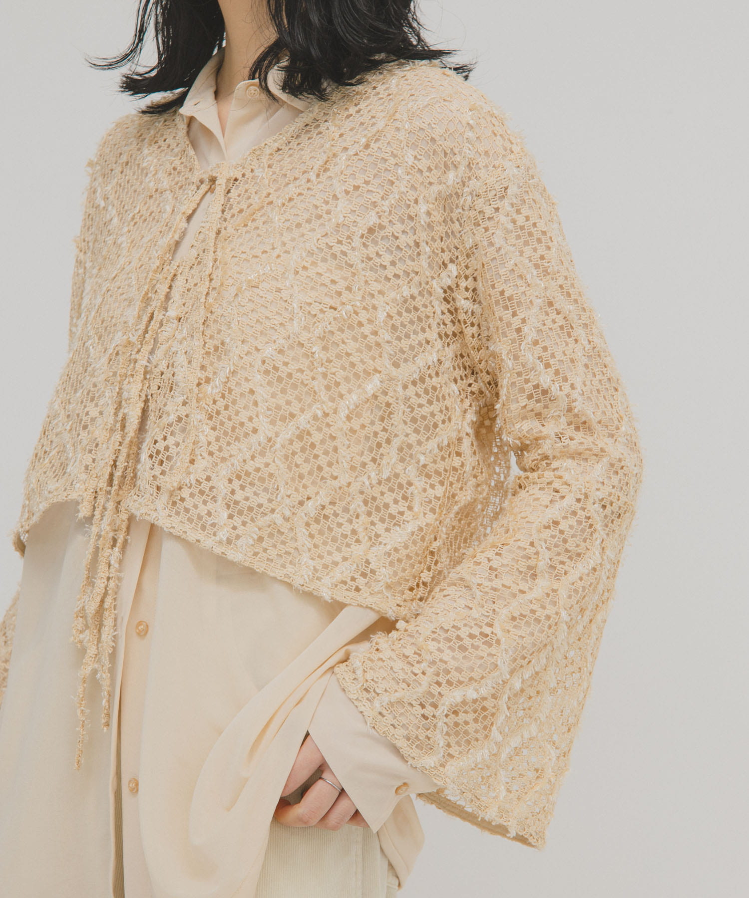 透膚雪尼爾紗短版開襟衫 →