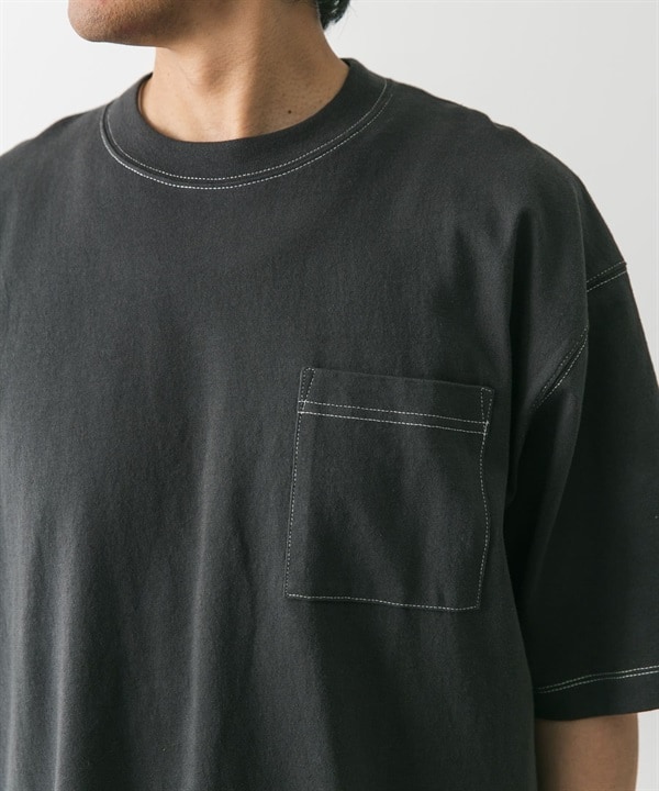 配色縫線圓領口袋T恤