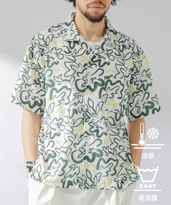 【涼感】印花短袖襯衫