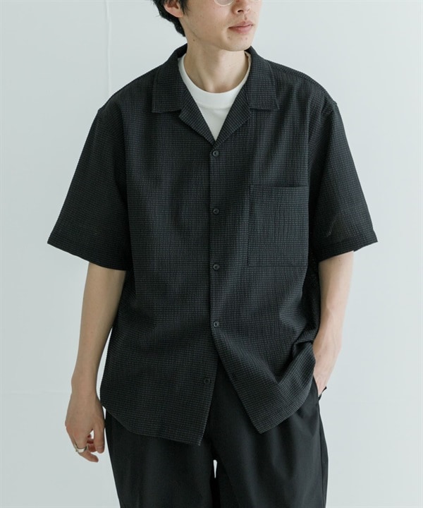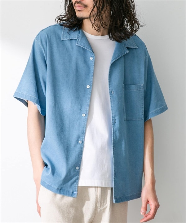 【涼感】網眼牛仔布短袖襯衫