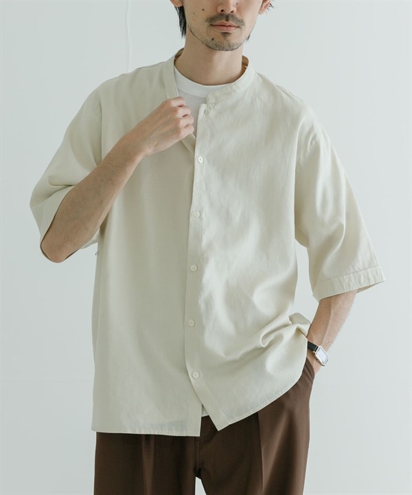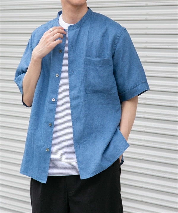 麻料中山領襯衫