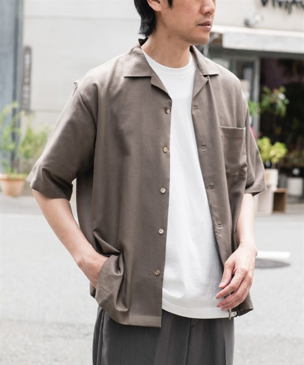 亞麻混絲質開領襯衫