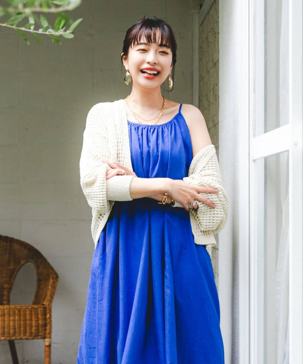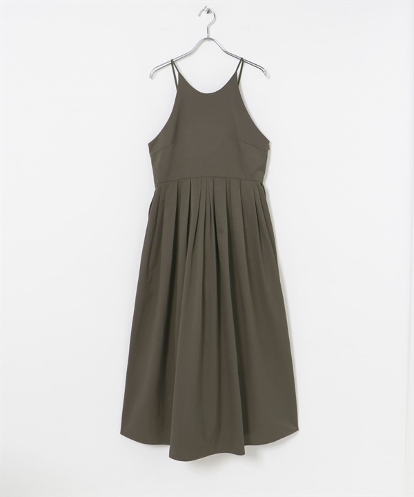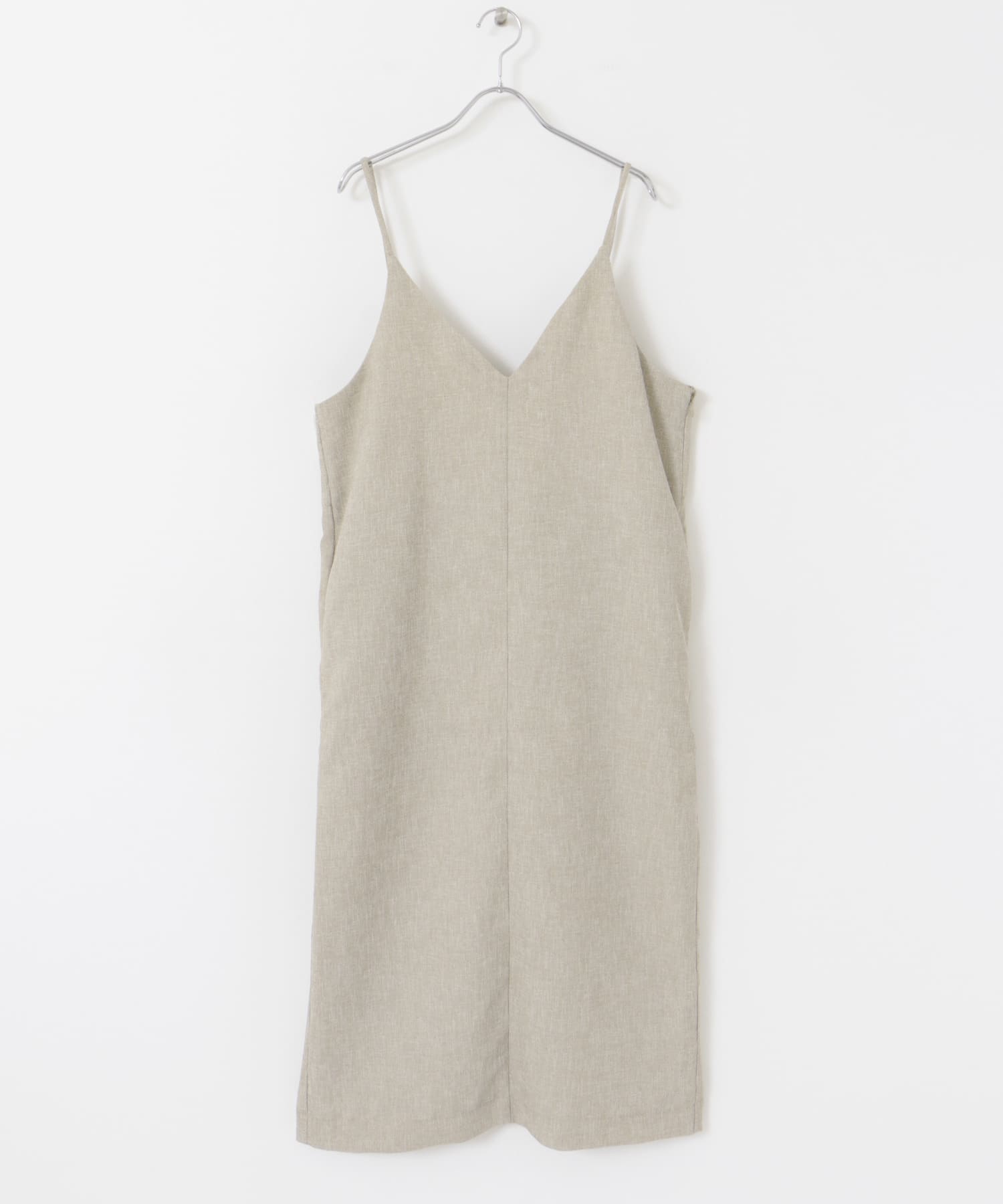 仿亞麻背面設計細肩帶洋裝