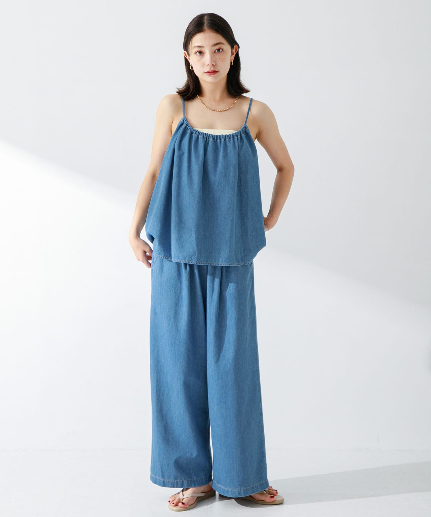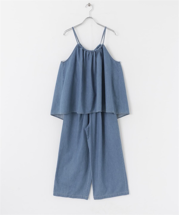 牛仔細肩帶背心加長褲組合
