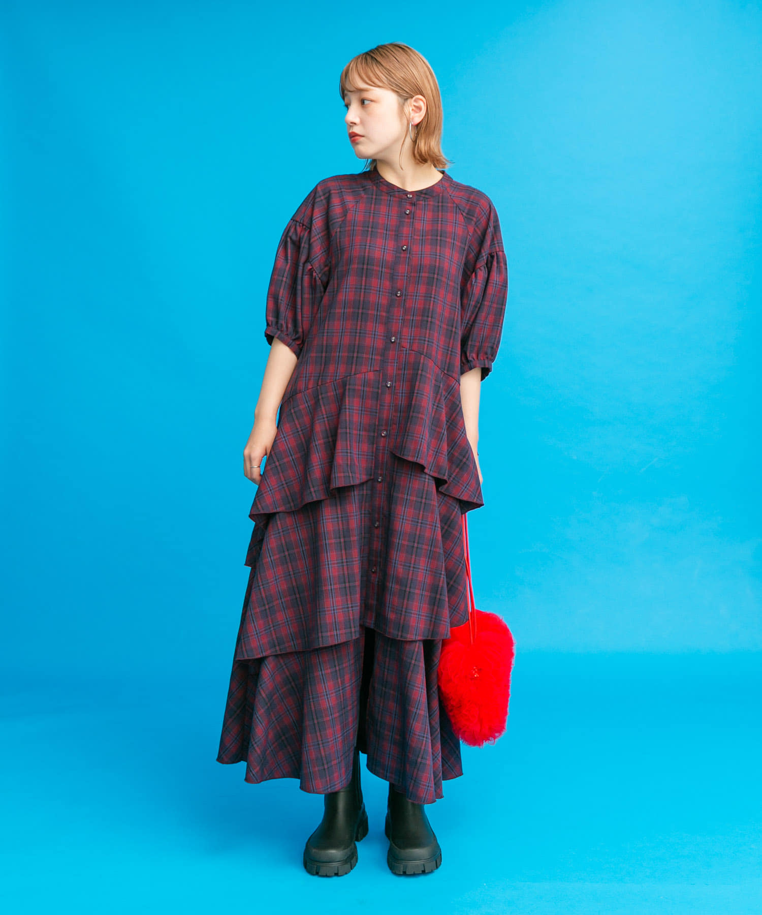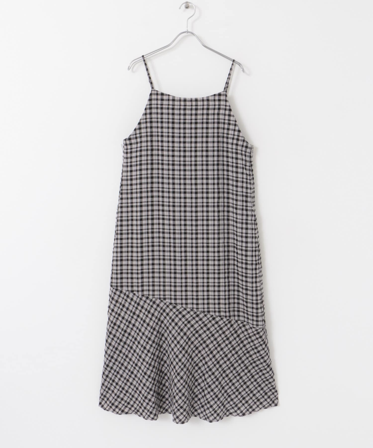 下襬不規則格紋洋裝