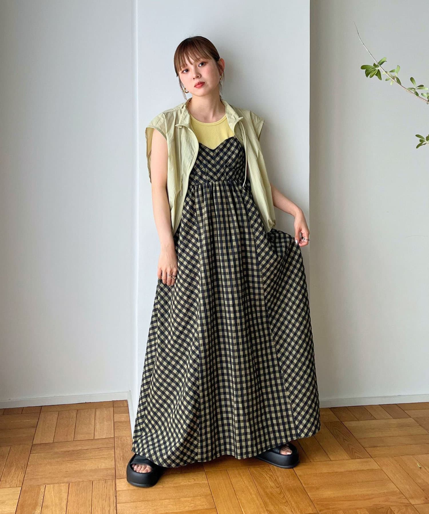 格紋傘襬細肩帶洋裝