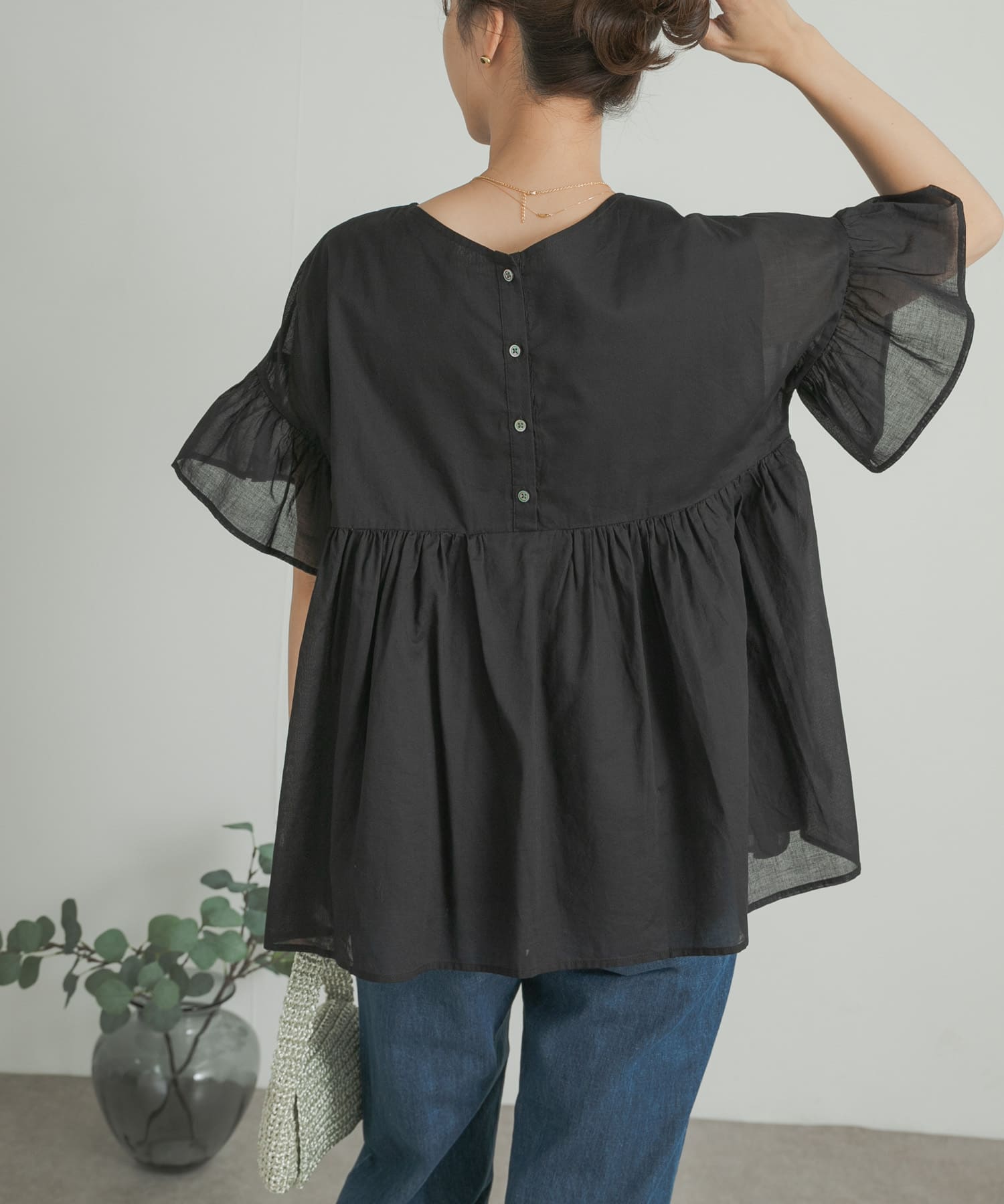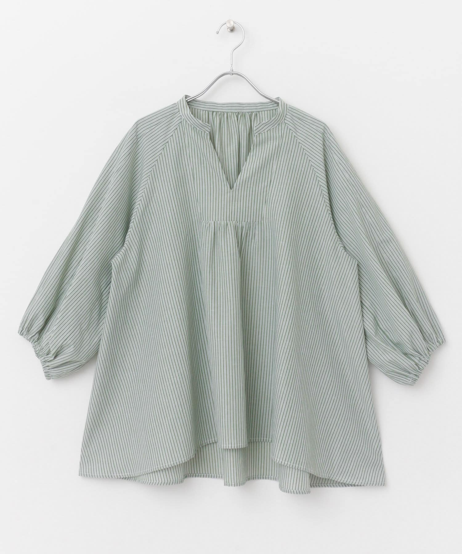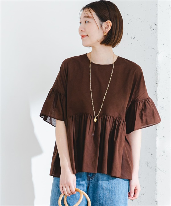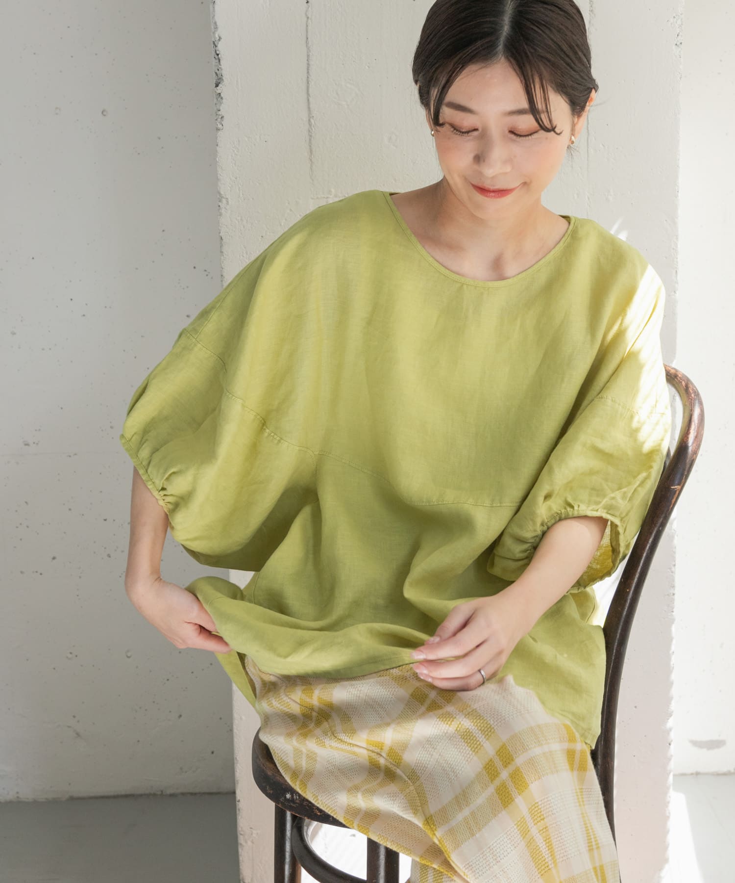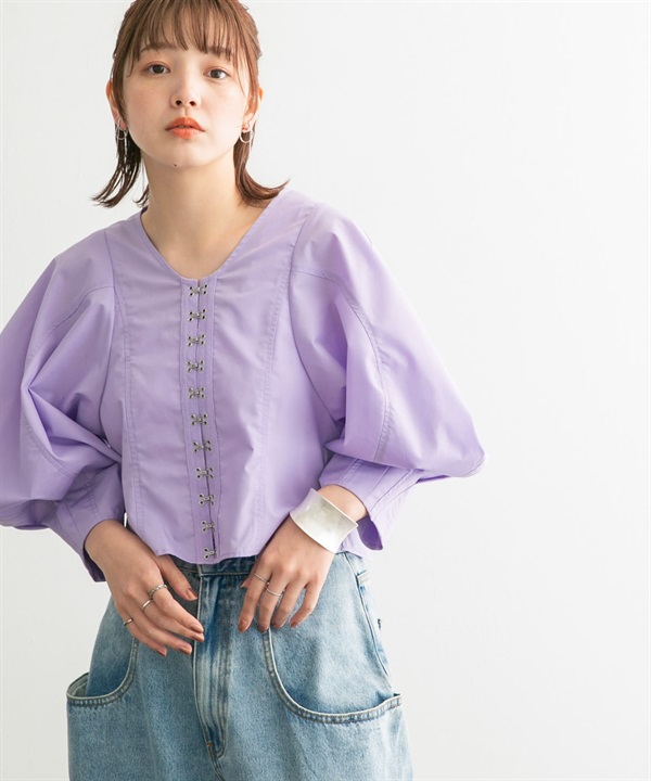 亞麻氣球袖罩衫