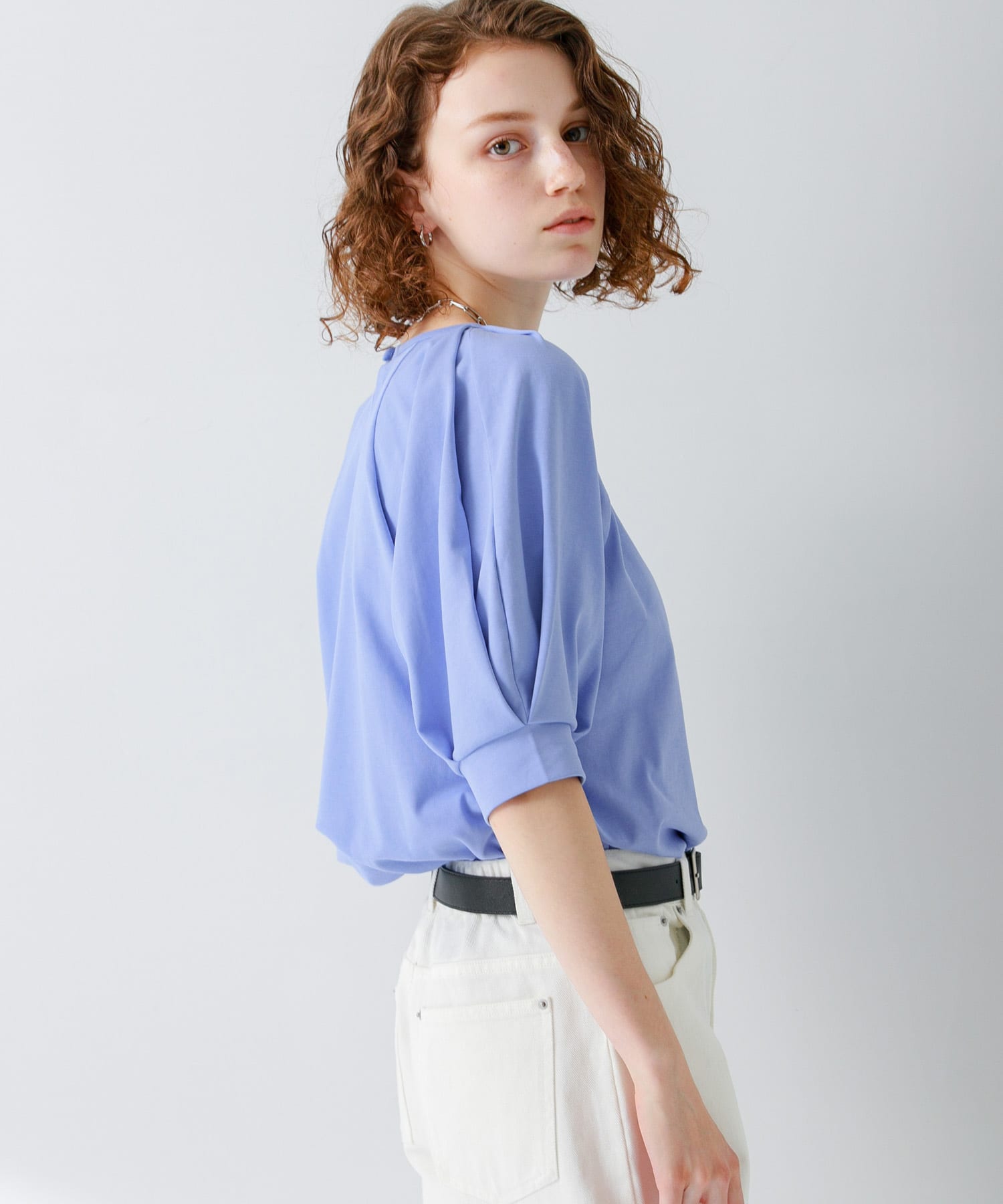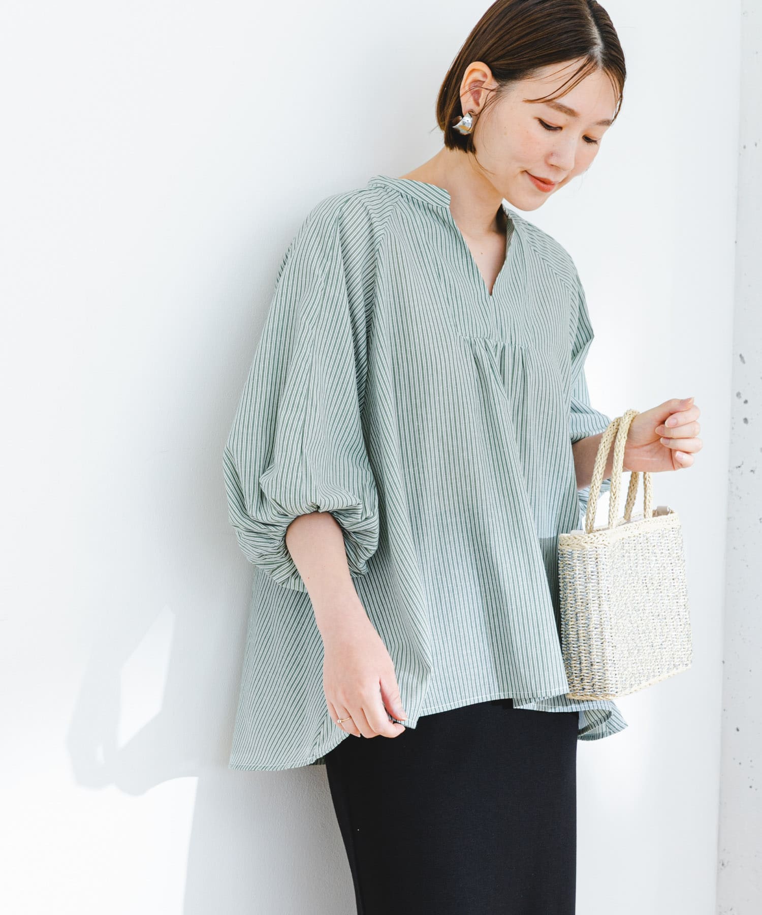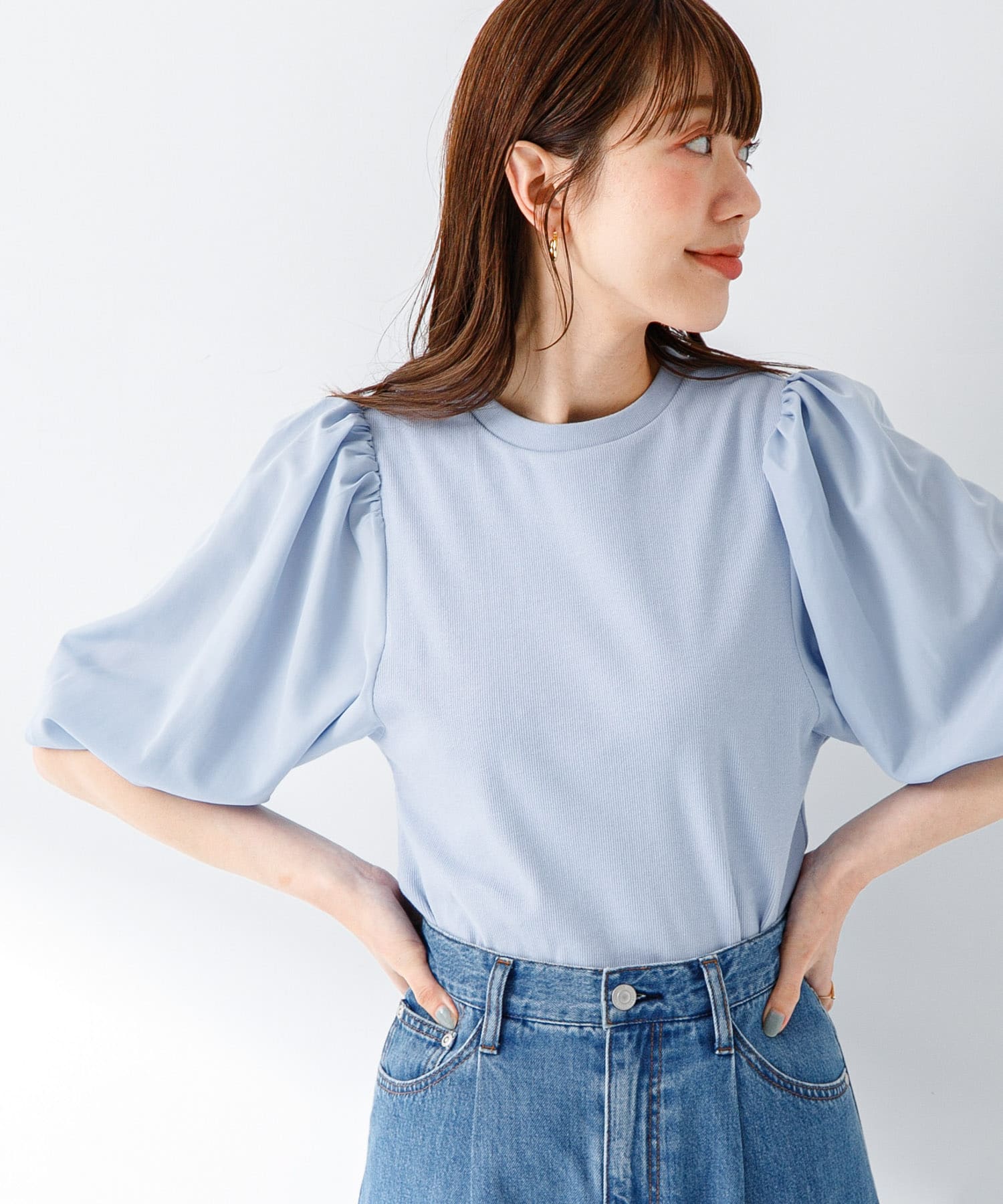 亞麻氣球袖罩衫