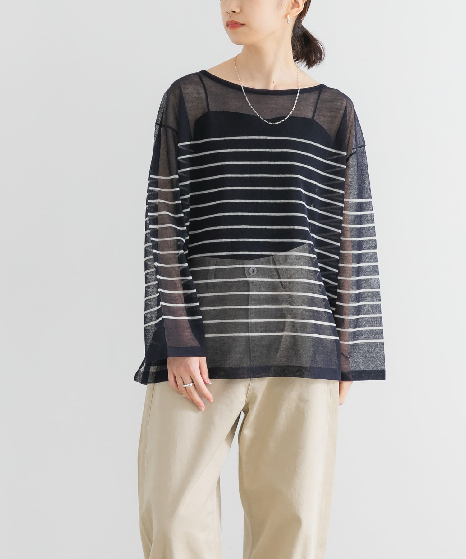 船型領透膚針織衫