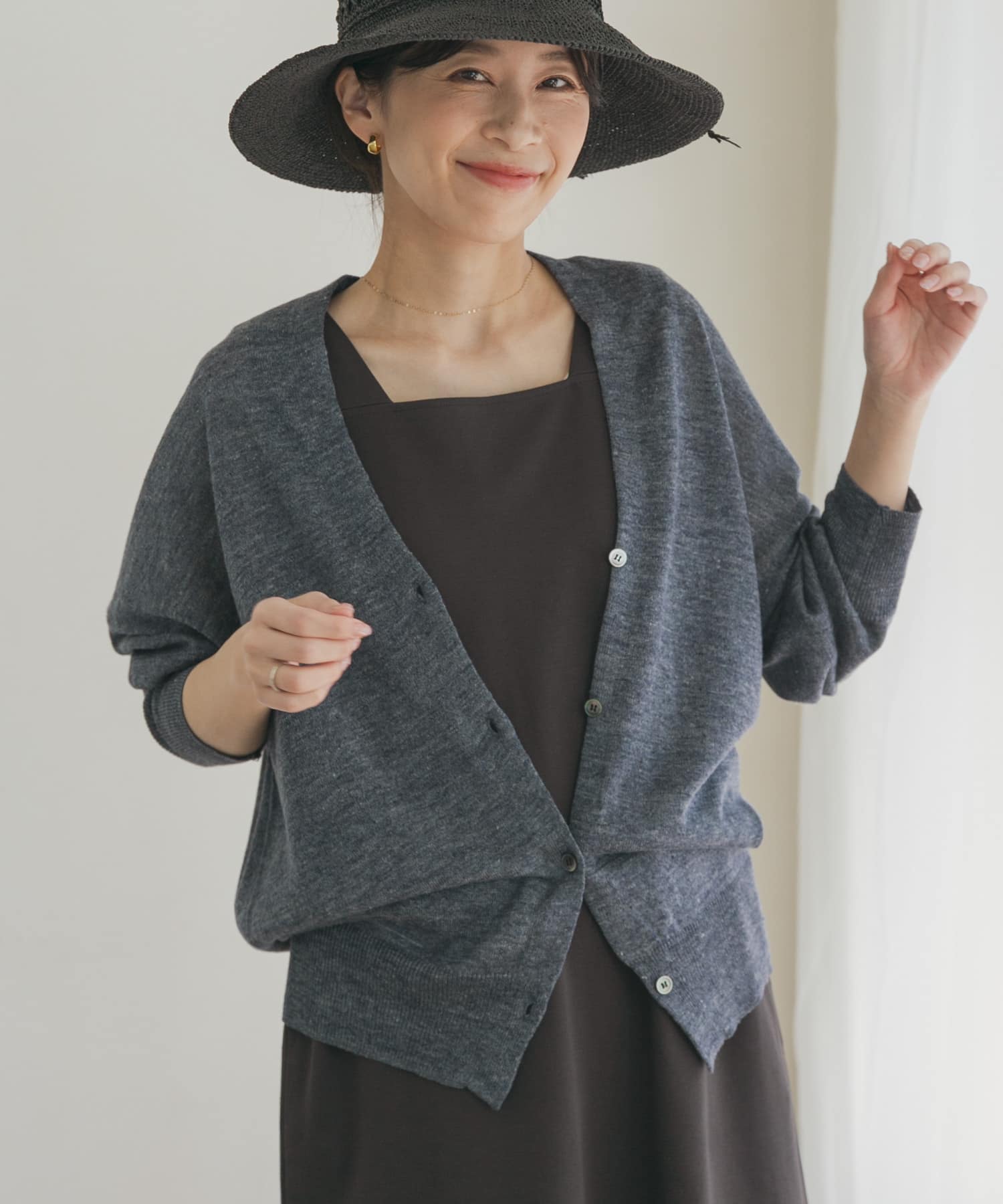 透膚亞麻V領開襟衫