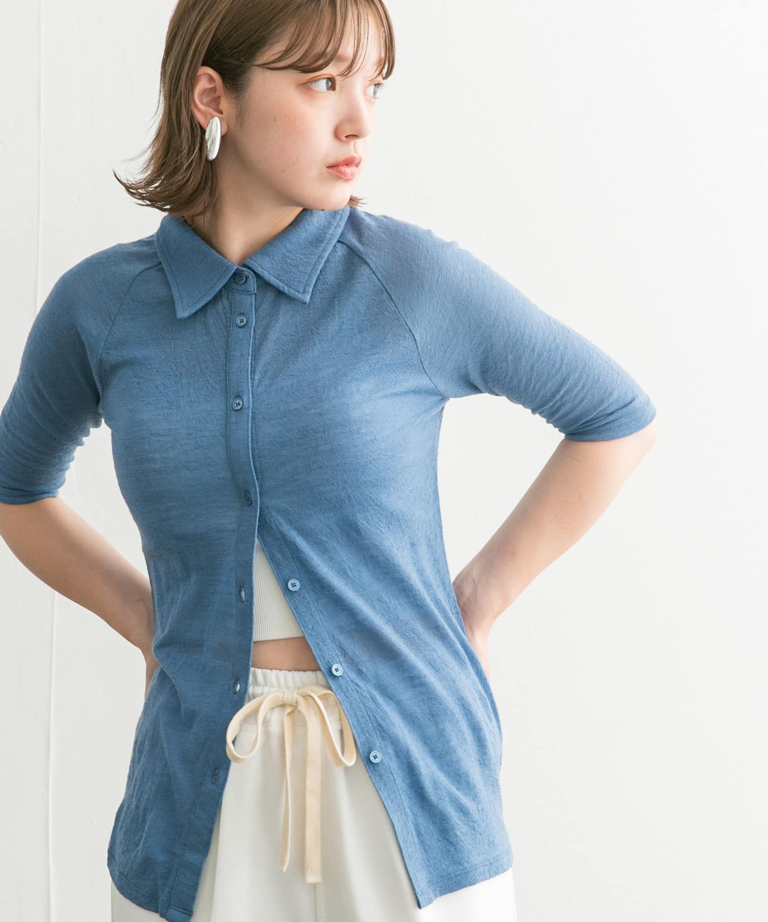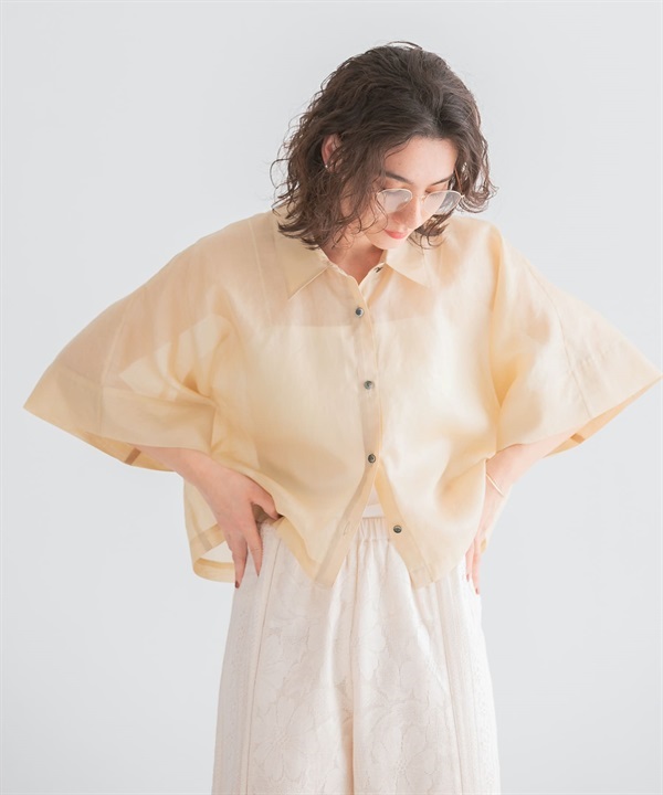 日本製傘狀袖透膚襯衫
