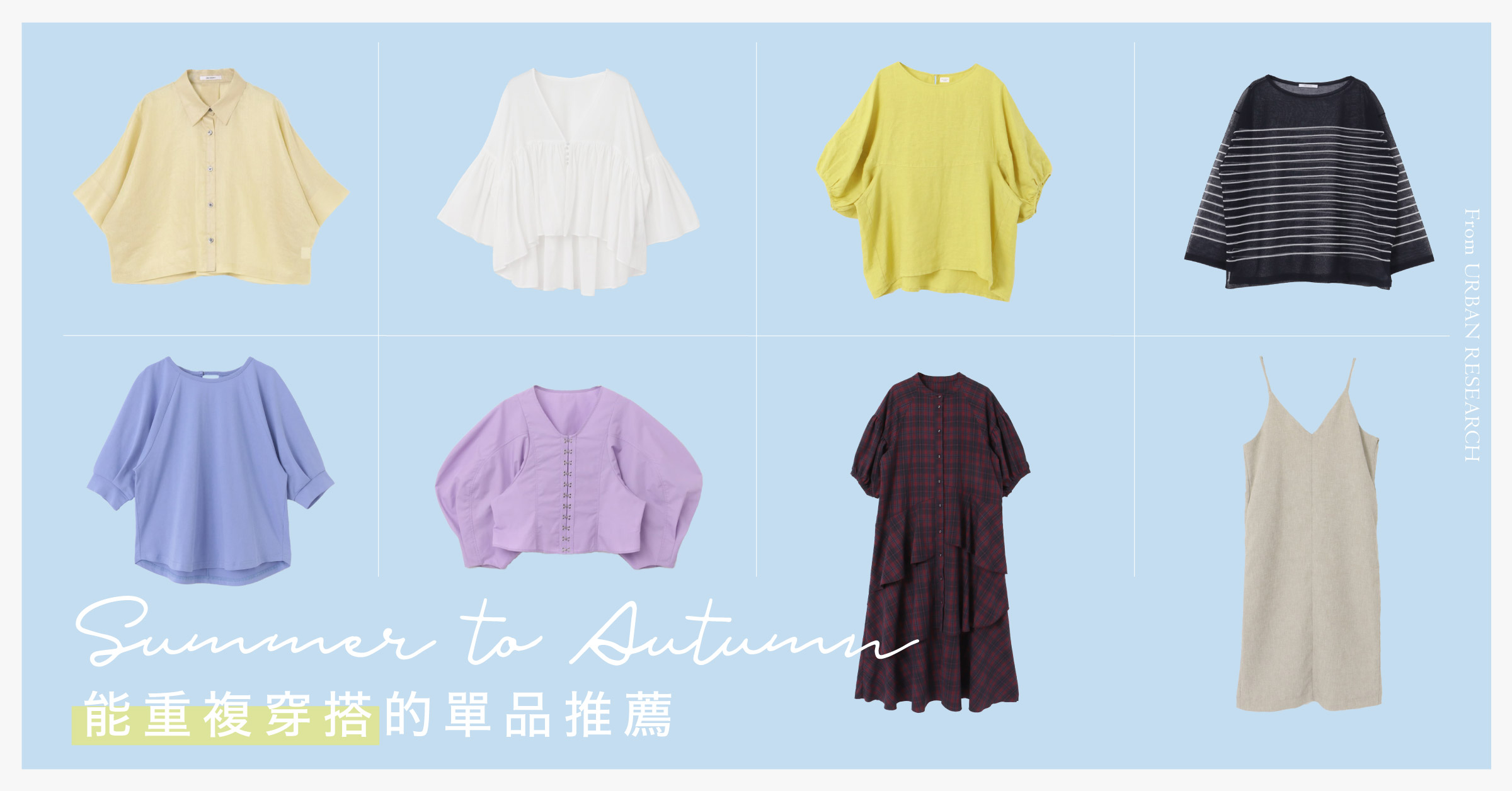 精選超值單品,讓您從現在到秋天都能重複穿搭, 同時融入季節元素,時尚度與實穿性兼具。