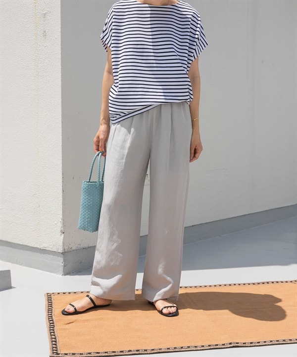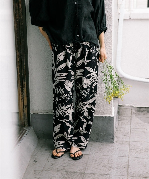 大人氣的印花輕便長褲, 腰頭鬆緊帶設計十分舒適。 帶有垂墜感及光澤感的布料, 慵懶感十足,搭配洋裝或T恤輕鬆穿出優雅質感。