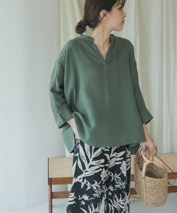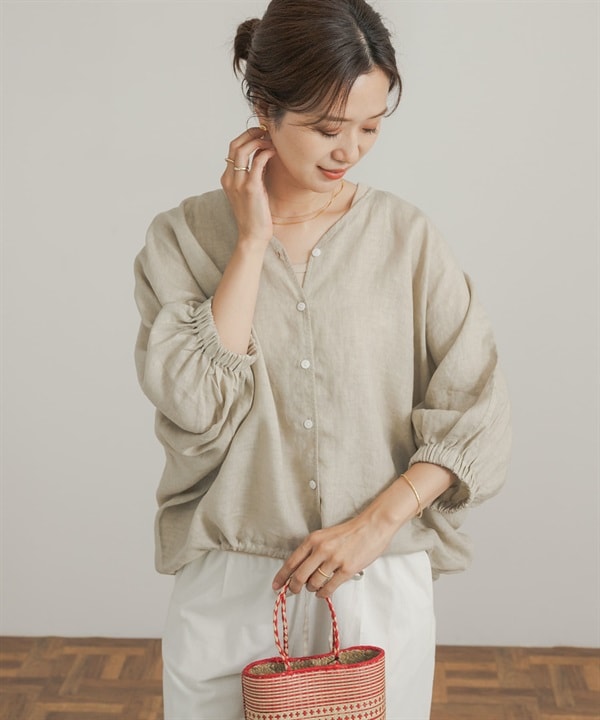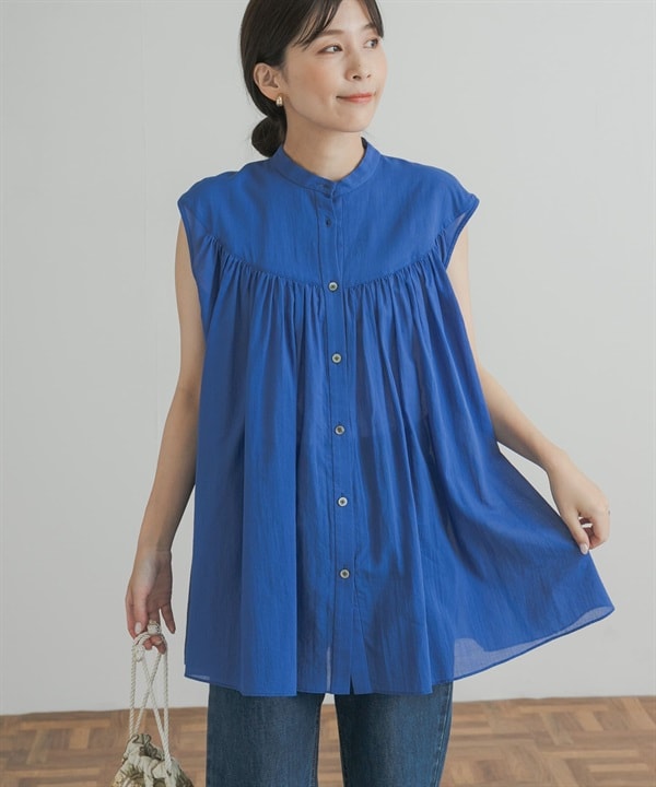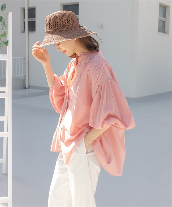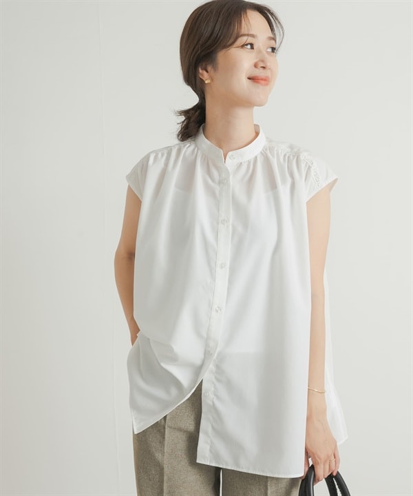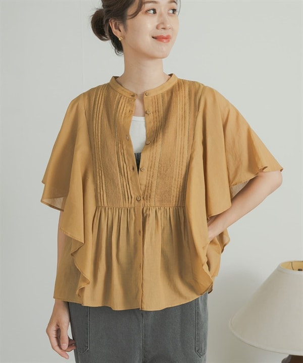能搭配各式下身的涼爽罩衫! 大量碎褶設計營造出蓬鬆感,穿著舒適柔軟。 可前後穿的2WAY設計,簡約俐落大人感穿搭。
