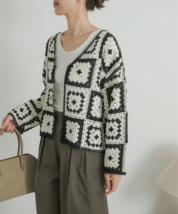 鉤針般的搶眼織紋,能點綴造型的手織風花紋洋裝。 編織機器織成,是不會太厚的鉤針織物, 炎熱天氣穿著也輕盈又涼快, 隨內搭上衣變換造型,適穿季節相當長。