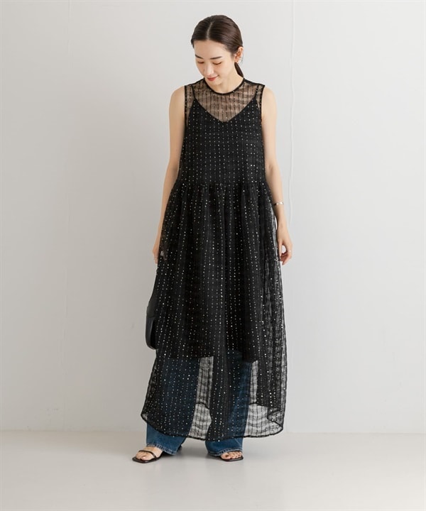 2WAY亮片薄紗層次洋裝(附襯裙)