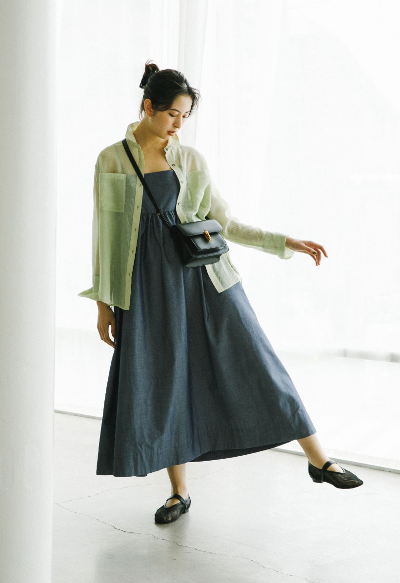 享受多層次穿搭樂趣的細肩帶洋裝。