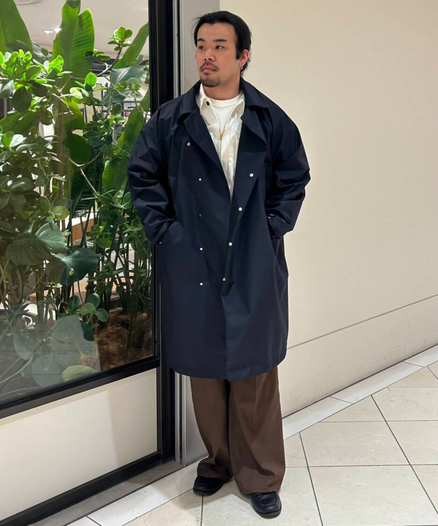 全新構思 OVERSIZE 剪裁設計大衣,捨去多餘細節,打造極簡洗鍊風格。袖口壓扣設計能輕鬆調整,裏布網眼材質防止流汗的黏膩感,領口的防風片可變換造型,立領設計,相當適合商務休閒風格造型,不會過於隨興,完美展現大人系的成熟魅力。