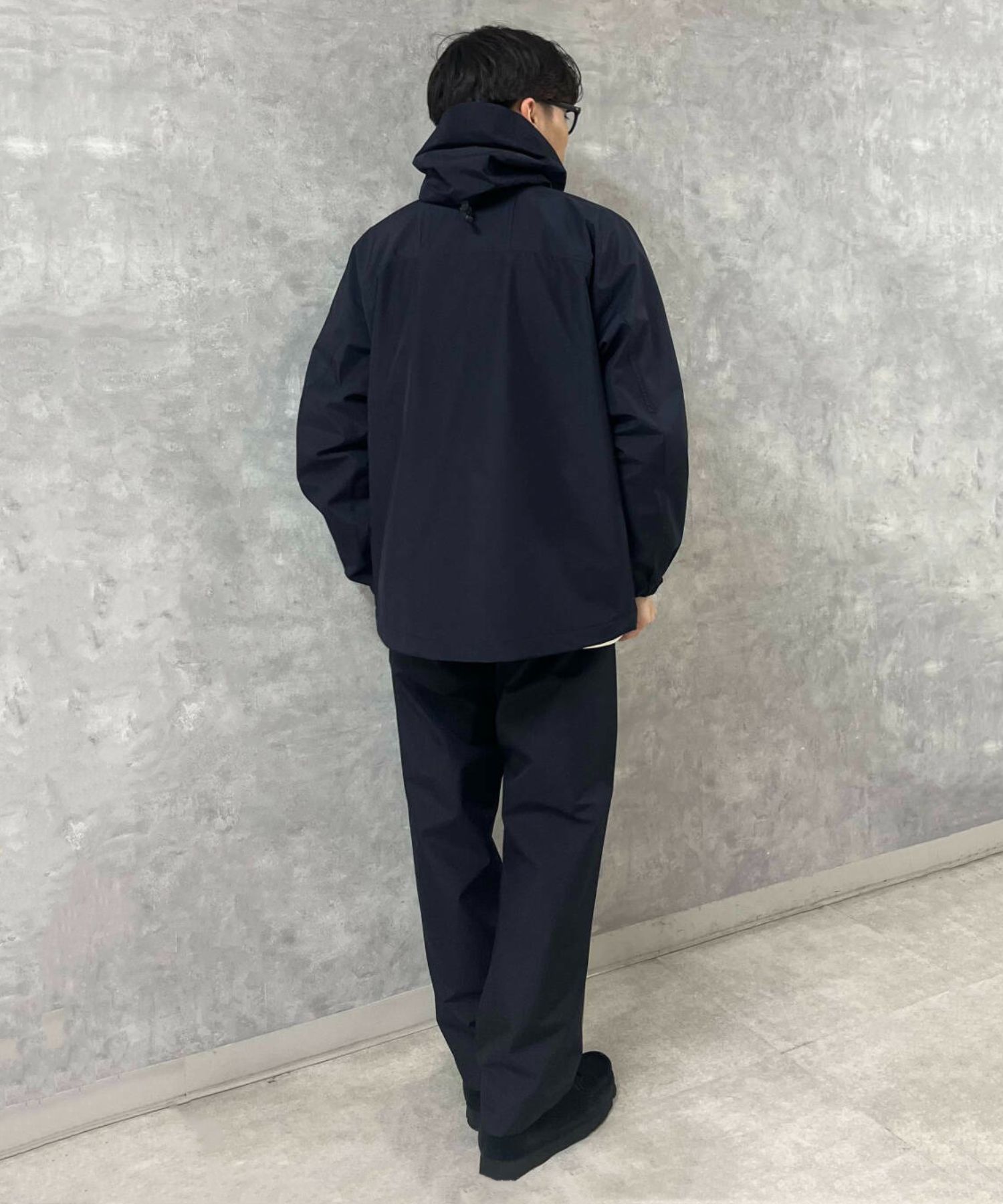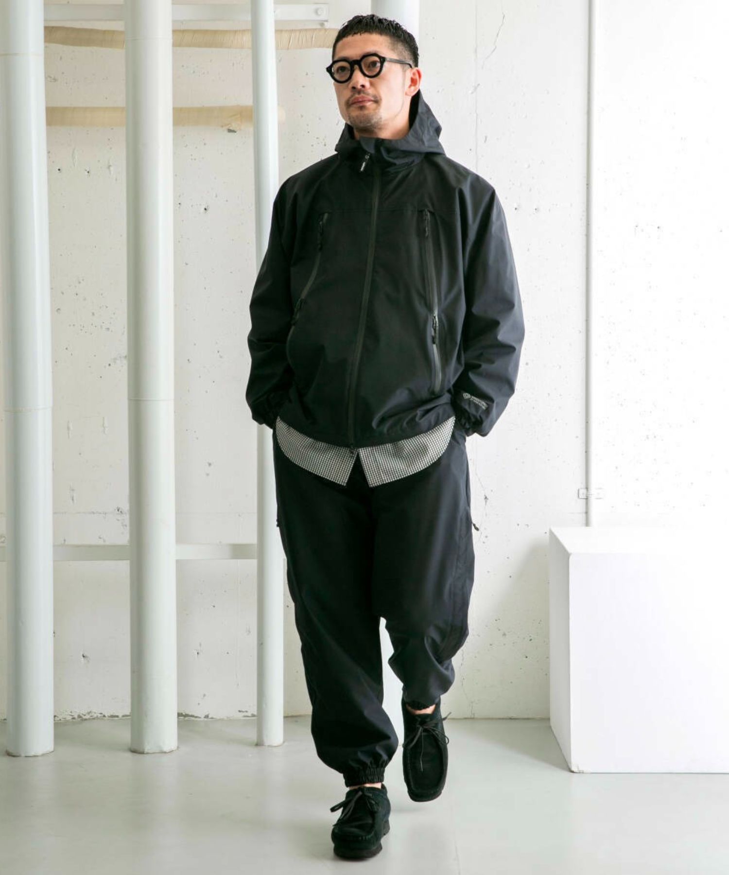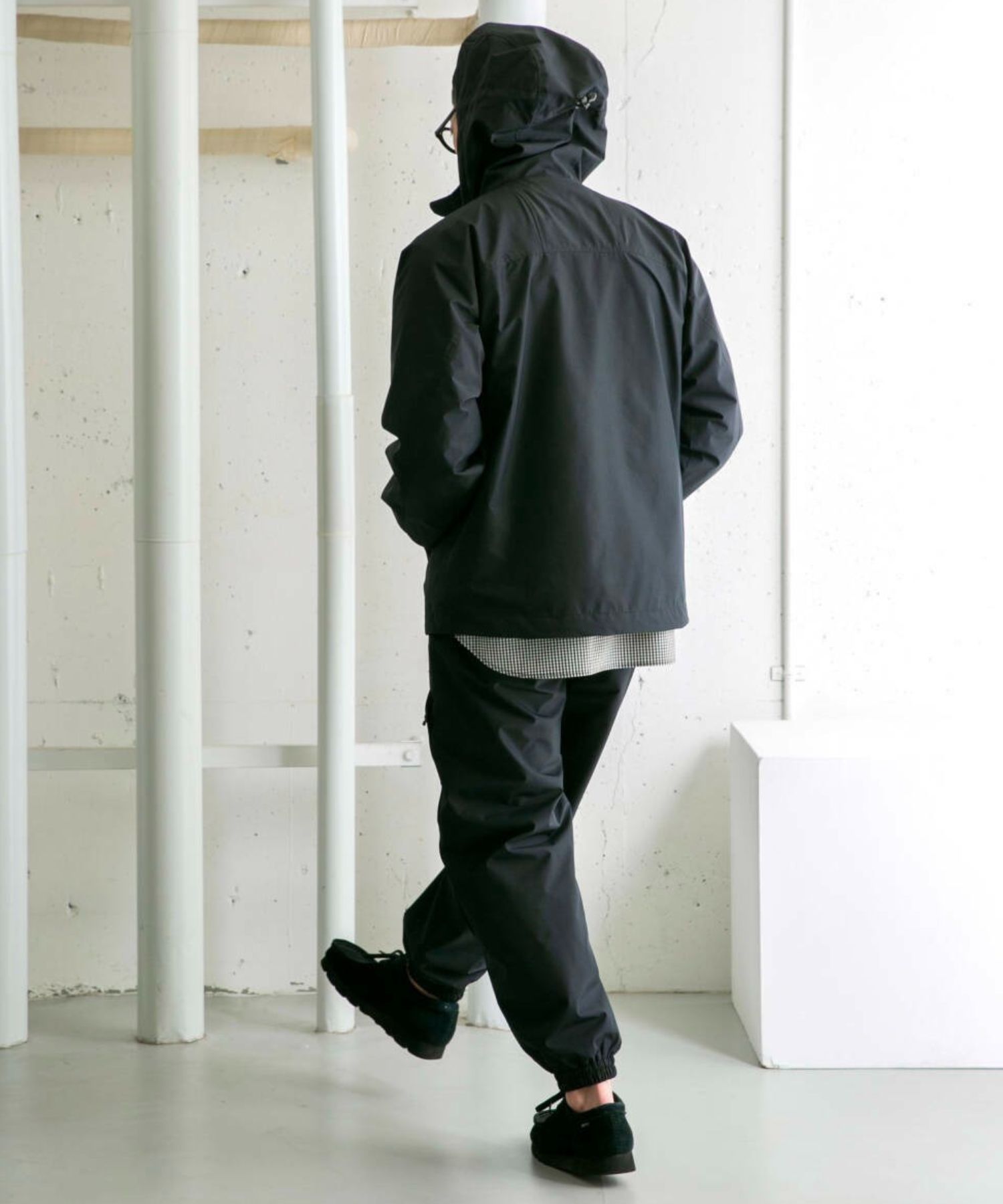連帽登山外套同樣極力簡化細節,除了在戶外場景穿著,尺寸和輪廓也相當適合日常搭配,因為衣長不會過短,同樣可以與商務風格單品搭配,穿在西裝外,讓日常通勤的衣著具備機能性,外套下襬為抽繩設計可調整輪廓外,也能夠防止強風灌入,是一款實穿又充滿極簡美學的登山外套。