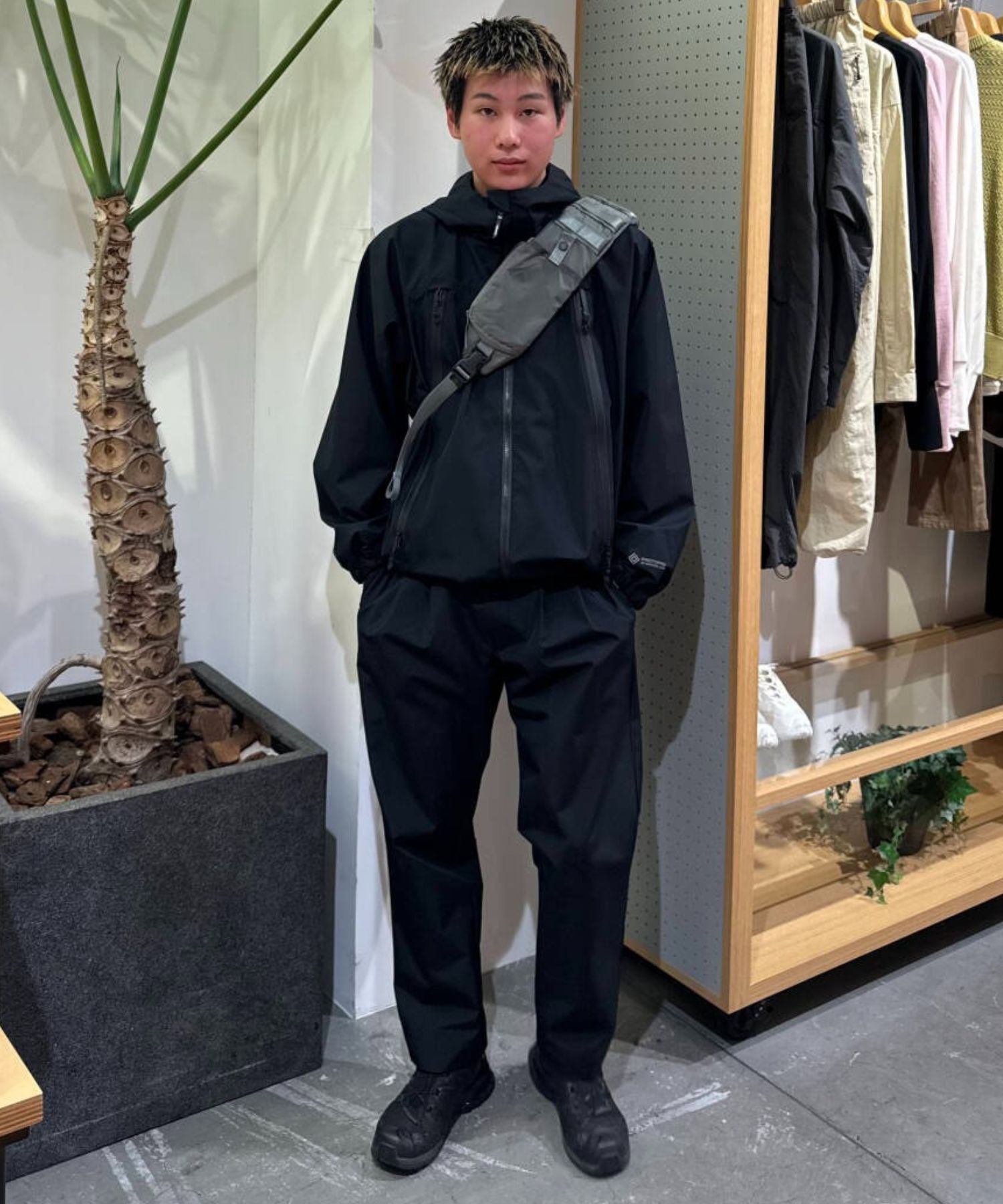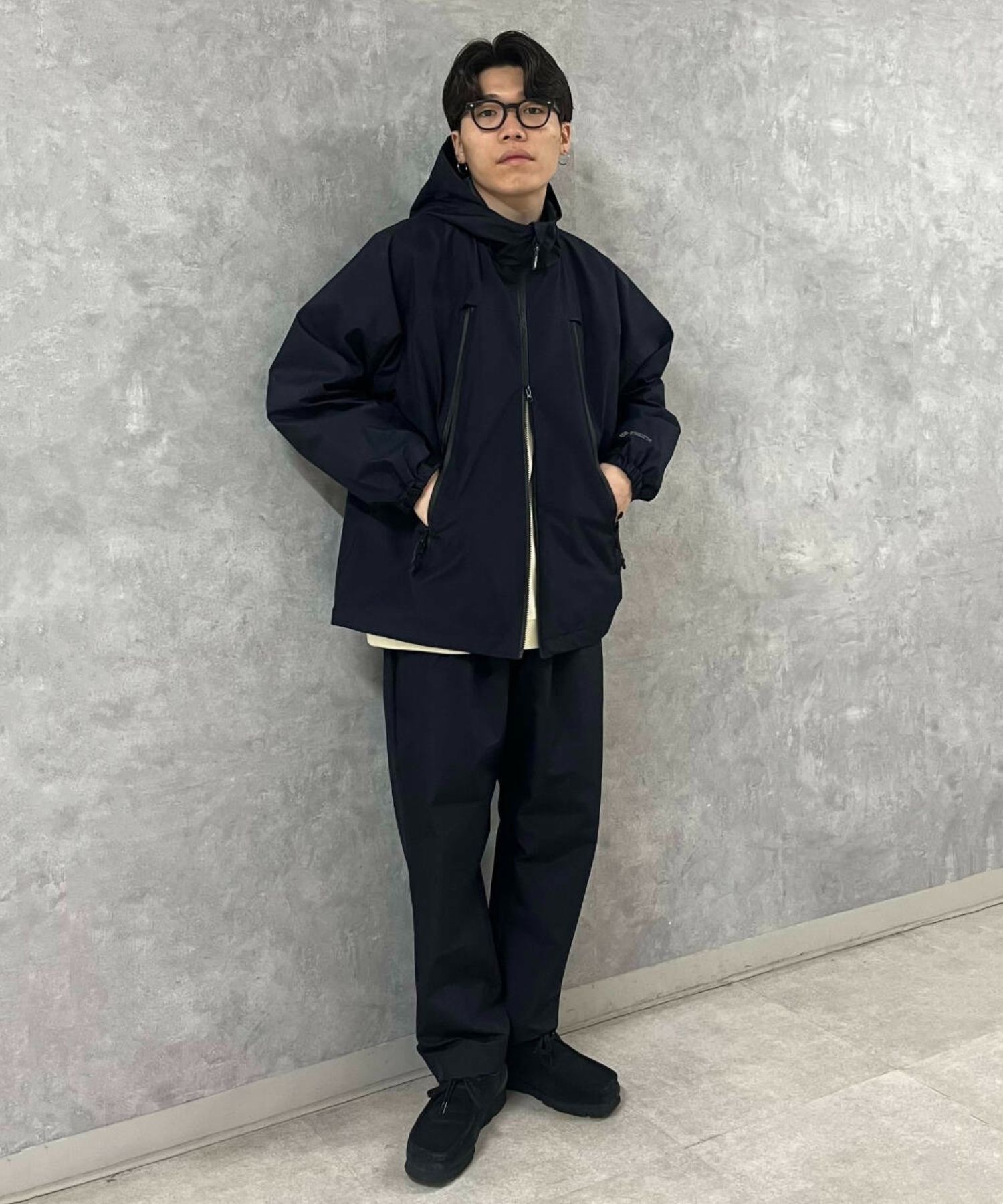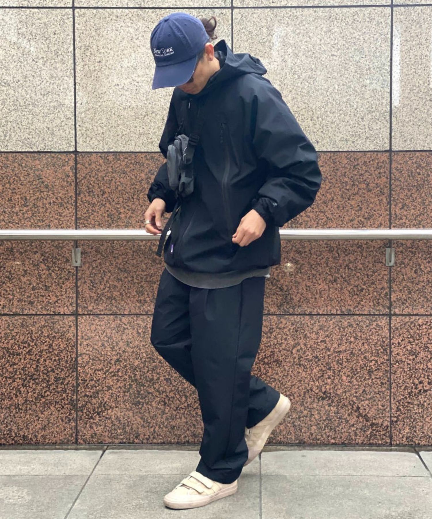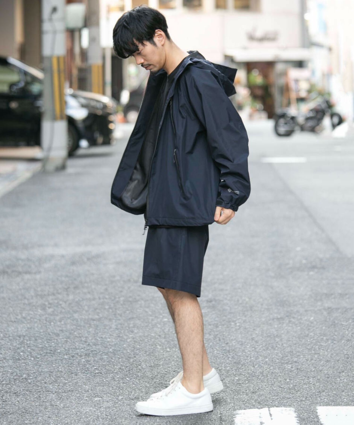 連帽登山外套同樣極力簡化細節,除了在戶外場景穿著,尺寸和輪廓也相當適合日常搭配,因為衣長不會過短,同樣可以與商務風格單品搭配,穿在西裝外,讓日常通勤的衣著具備機能性,外套下襬為抽繩設計可調整輪廓外,也能夠防止強風灌入,是一款實穿又充滿極簡美學的登山外套。