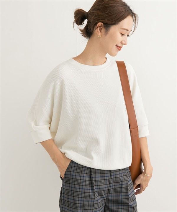 蝙蝠袖圓編羅紋寬鬆T恤