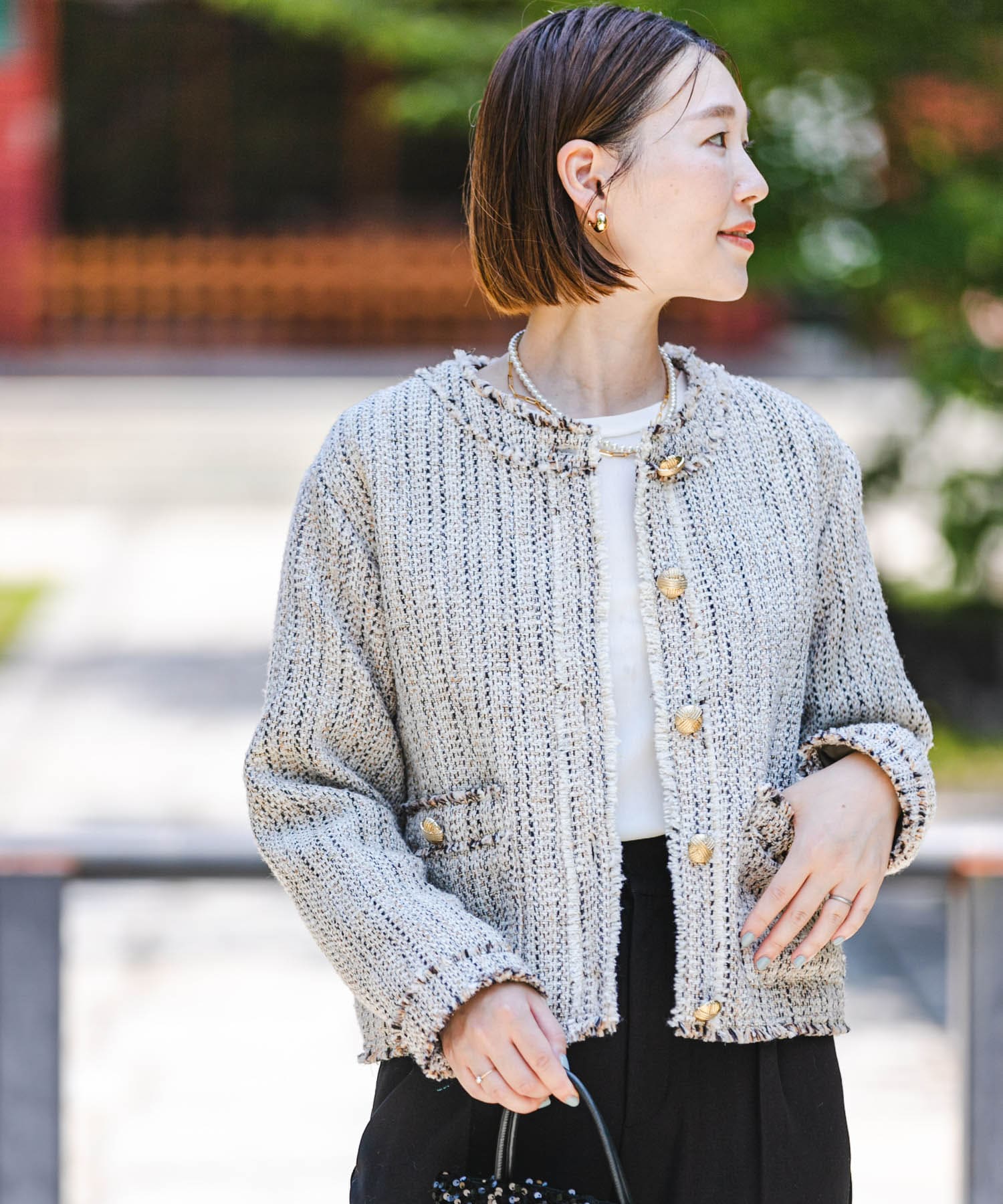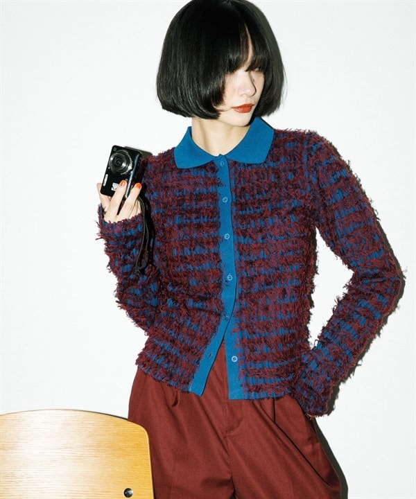 仿粗花呢開襟衫