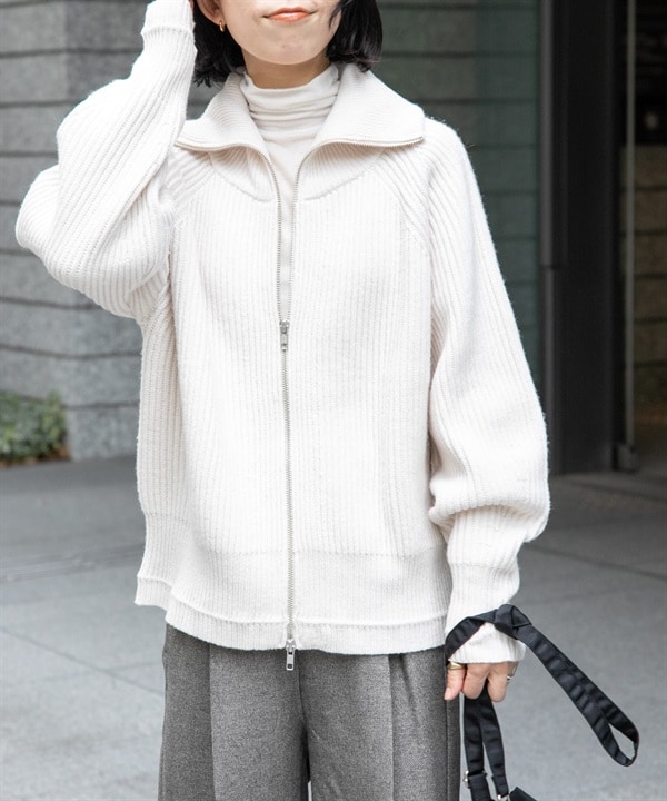 FORK&SPOON 可水洗粗針織拉鍊開襟衫