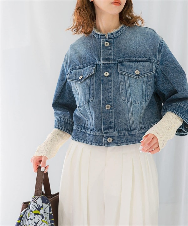 打褶袖牛仔外套