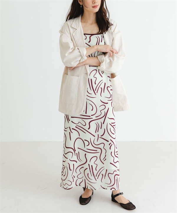 藝術線條印花細肩帶洋裝