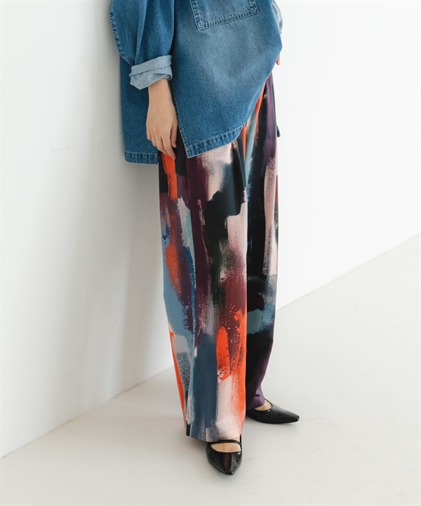 色塊渲染印花寬褲