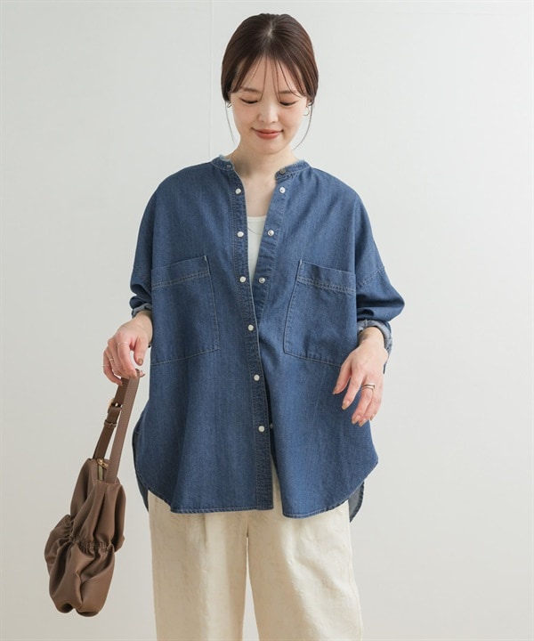 牛仔立領襯衫