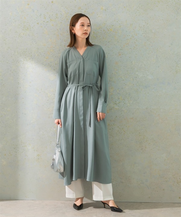 口袋設計V領洋裝